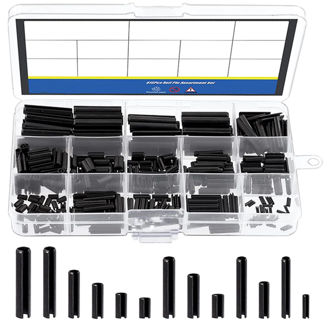 Die praktische Plastikbox hält alles ordentlich sortiert und griffbereit. Kein langes Suchen mehr! Von den kleinen M1,5 x 6 mm bis zu den großen M8 x 30 mm Stiften - alles ist perfekt organisiert. Perfekt für die mechanische Industrie, aber auch super für Hobbybastler.