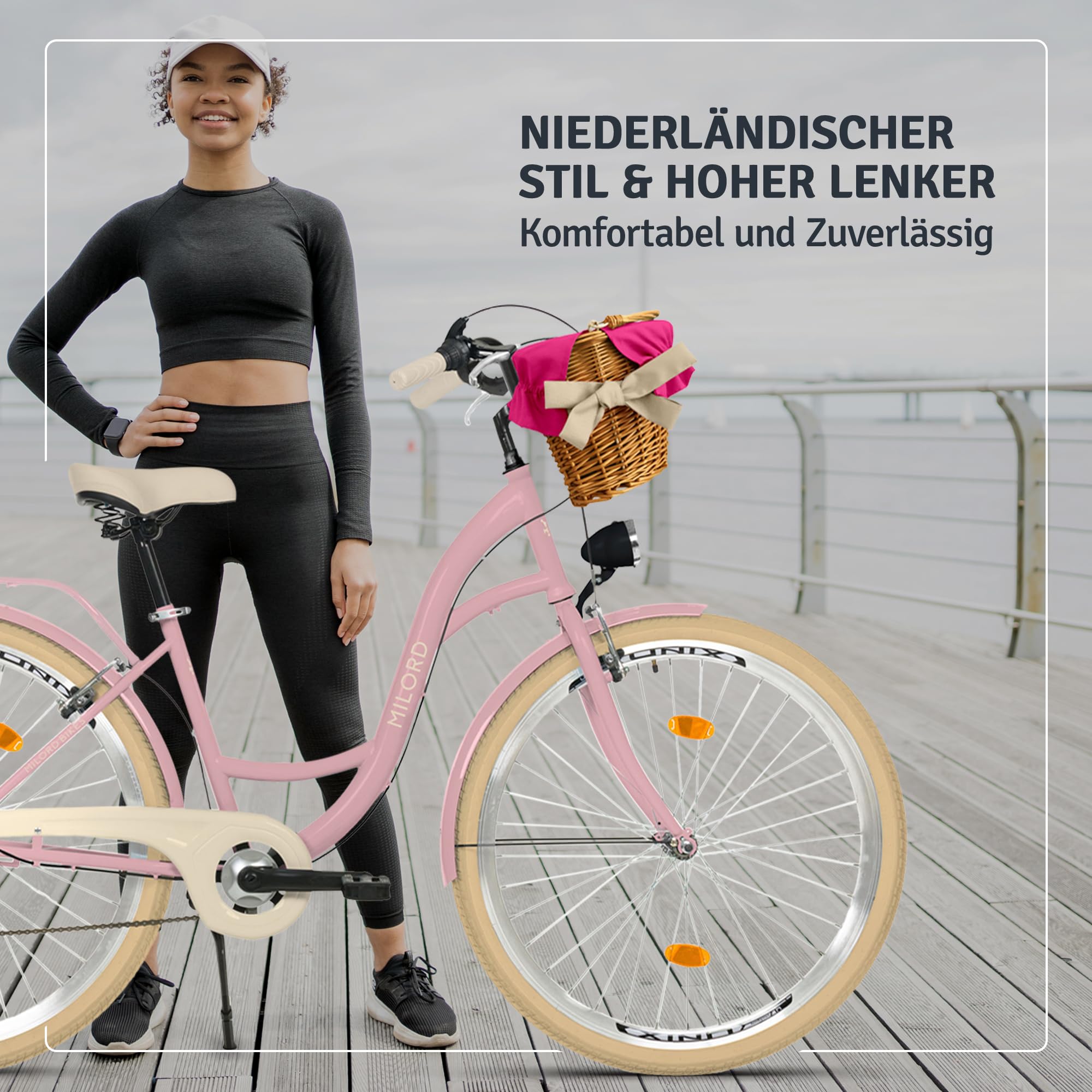 Traumhaftes Retro-Fahrrad im holländischen Stil! Dieses Balticuz Milord in Grün-Creme ist einfach nur schön. Mit praktischem Weidenkorb vorne und Gepäckträger hinten. 28 Zoll Reifen für smoothes Fahren, 1-Gang für unkomplizierten Fahrspaß. Vollkettenschutz und Kotflügel - sauber und praktisch. Bequemer Sattel und aufrechte Sitzposition. Wird zu 85% montiert geliefert, Rest einfach selbst zusammenbauen. Perfekt für gemütliche Stadtfahrten. Style und Funktionalität pur!