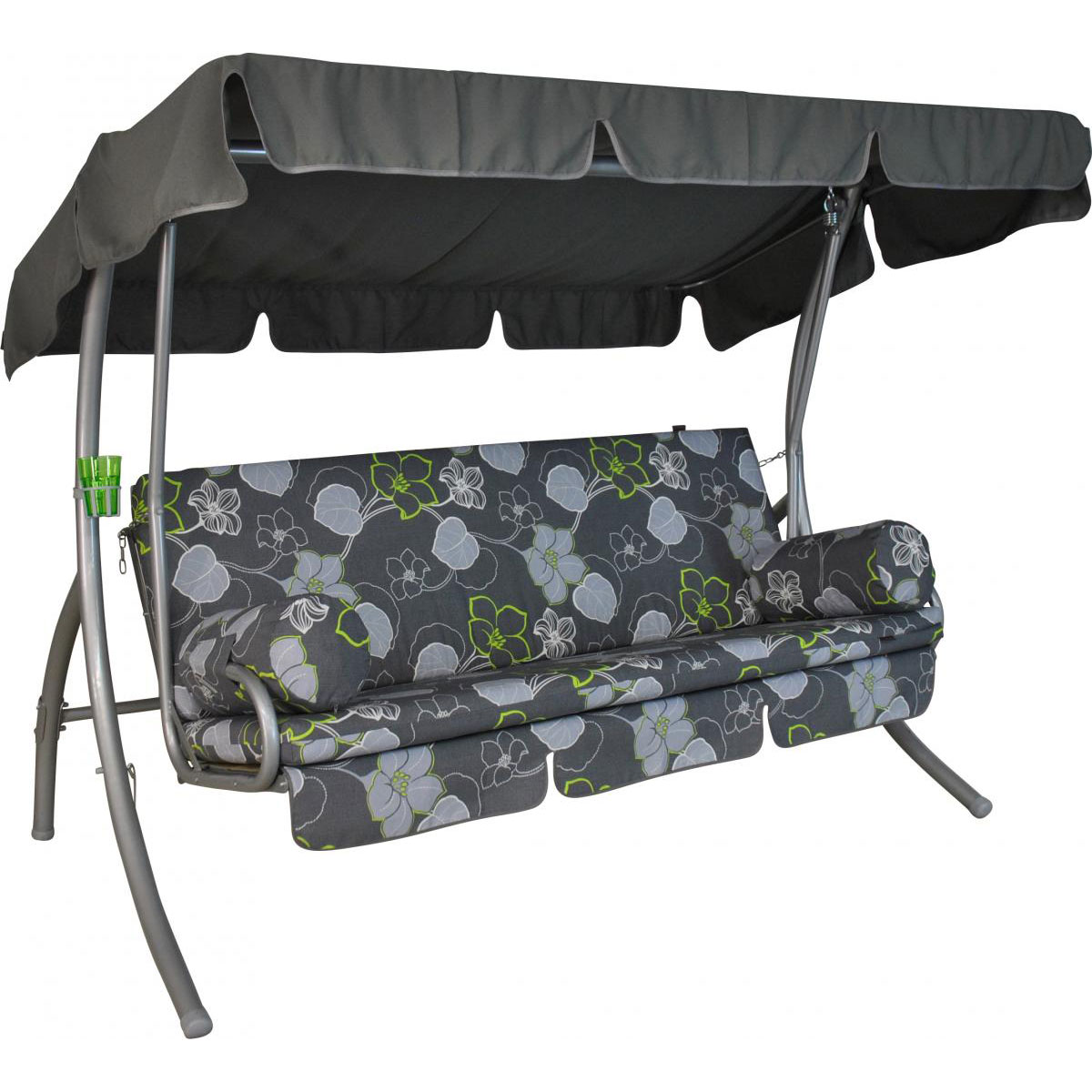 Maße: 210cm breit, 160cm hoch. Mit verstellbarem Dach - optimaler Sonnenschutz. Inklusive Kissen und Auflagen - sofort bequem. Praktischer Getränkehalter - alles griffbereit.