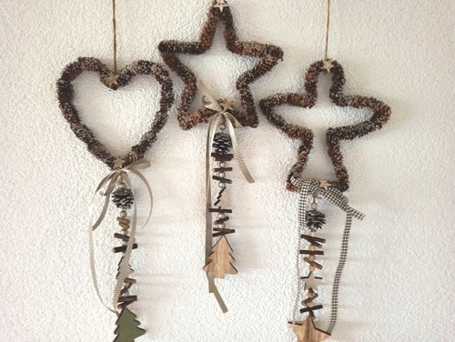 • Weihnachtsanhänger Aus Holz - 6-tlg. Set Mit Herz, Stern Und Baum