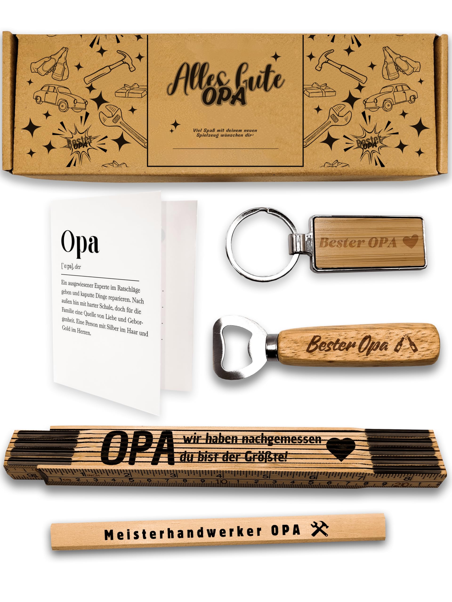 Suchst du ein besonderes Geschenk für deinen Opa? Dieser hölzerne Flaschenöffner ist genau das Richtige! Mit 14cm Länge passt er perfekt in jede Hand und liegt super angenehm. Aus hochwertigem Holz mit schöner Maserung - fühlt sich richtig wertig an. Die Gravur 'Bester Opa' macht es zu einem persönlichen Geschenk, das von Herzen kommt. Perfekt für Vatertag, Geburtstage, Weihnachten oder einfach so als kleine Aufmerksamkeit. Dein Opa wird sich riesig freuen und bei jedem Bier oder Soda an dich denken! Super praktisch für zu Hause oder unterwegs - klein genug für die Hosentasche. Mach deinem Opa eine Freude mit diesem zeitlosen Geschenk, das nicht nur nützlich ist, sondern auch eure besondere Verbindung zeigt. Einfach bestellen und Opa überraschen!