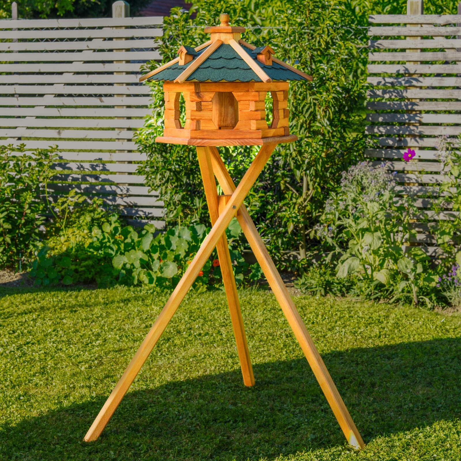 Einladung für gefiederte Gäste! Dieses wunderschöne Vogelhaus aus Holz wird zum Blickfang in deinem Garten. Wählbar in drei Größen: L (48x34 cm), XL (56x37 cm) oder XXL (60x40 cm). Perfekter Futterplatz für Meisen, Finken, Rotkehlchen und Sperlinge. Hergestellt in Polen in solider Handarbeit - langlebig und nachhaltig. Optional mit praktischem Holzständer für flexible Aufstellung. Mach deinen Garten zur Vogel-Oase! Beobachte die Vögel beim Fressen - Entspannung pur für die ganze Familie. Das natürliche Holzdesign passt in jeden Gartenstil. Einfach zu befüllen und zu reinigen. Unterstütze die heimische Vogelwelt das ganze Jahr über. Qualität, die Generationen hält - ein echter Klassiker für Naturliebhaber!