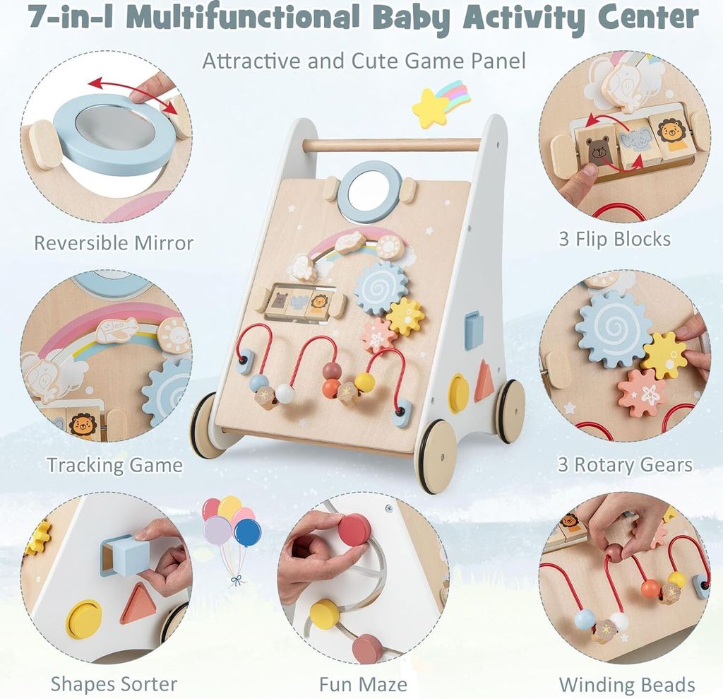 Oh, der LIFEZEAL Lauflernwagen ist genau das Richtige, wenn dein Kleines die Welt entdecken will! Aus robustem Holz gefertigt, hilft er nicht nur beim Laufenlernen, sondern bietet auch jede Menge Spielspaß. Mit dabei: eine praktische Aufbewahrungsschublade, bunte Perlen, eine Oktave, ein Schlägel und verschiedene Holzklötze. So förderst du spielerisch Motorik, Kreativität und Hand-Augen-Koordination. Und das Beste: Die abgerundeten Ecken und gummierten Räder sorgen für extra Stabilität und Sicherheit. Perfekt für Jungs und Mädels ab 3 Jahren – aber Achtung, auch jüngere Geschwister werden damit liebäugeln! Maße: 33 x 32 x 55 cm. Inklusive Anleitung. Einfach aufbauen und loslaufen!