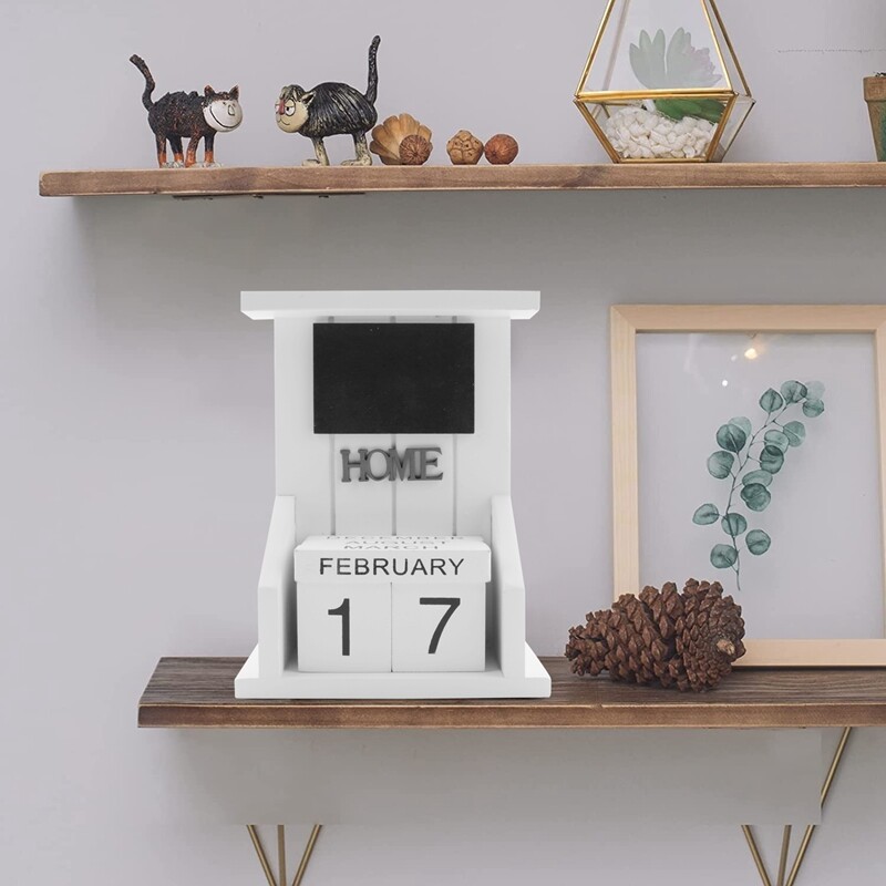 • Ewiger Kalender Aus Holz - Wiederverwendbarer Schreibtisch Kalender Weiß