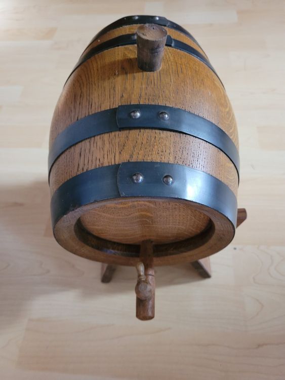 Prost! 🍷 Dieses wunderschöne 3-Liter-Holzfass bringt rustikalen Charme in dein Zuhause. Perfekt für die Lagerung und Reifung von Whiskey, Wein oder Rum - das Fass veredelt deine Getränke und macht sie vollmundiger.\n\nAus hochwertigem Kiefernholz gefertigt, mit stabilen Edelstahlreifen und einem praktischen Zapfhahn. So kannst du jederzeit bequem deine Lieblingsgetränke zapfen! Der mitgelieferte Holzständer sorgt für sicheren Stand und sieht dabei noch richtig gut aus.\n\nTechnische Daten:\n• Fassungsvermögen: 3 Liter (0,66 Gallonen)\n• Maße: 16x23,5 cm\n• Material: Kiefernholz, Edelstahl, Aluminiumfolie\n• Innen mit Aluminiumfolie ausgekleidet für optimalen Geschmack\n\nEinfach zusammenzubauen - in wenigen Minuten steht deine persönliche Hausbar bereit! Ideal für die Wohnung, Gartenpartys oder als Deko-Stück. Aber Achtung: Nicht für Bier geeignet!\n\nReinigung? Ganz einfach: Mit einem weichen Tuch abwischen, nicht einweichen. So hast du lange Freude an diesem tollen Holzfässchen. Perfekt für alle, die ihre Getränke selbst reifen lassen wollen oder einfach ein stylisches Accessoire für Zuhause suchen!