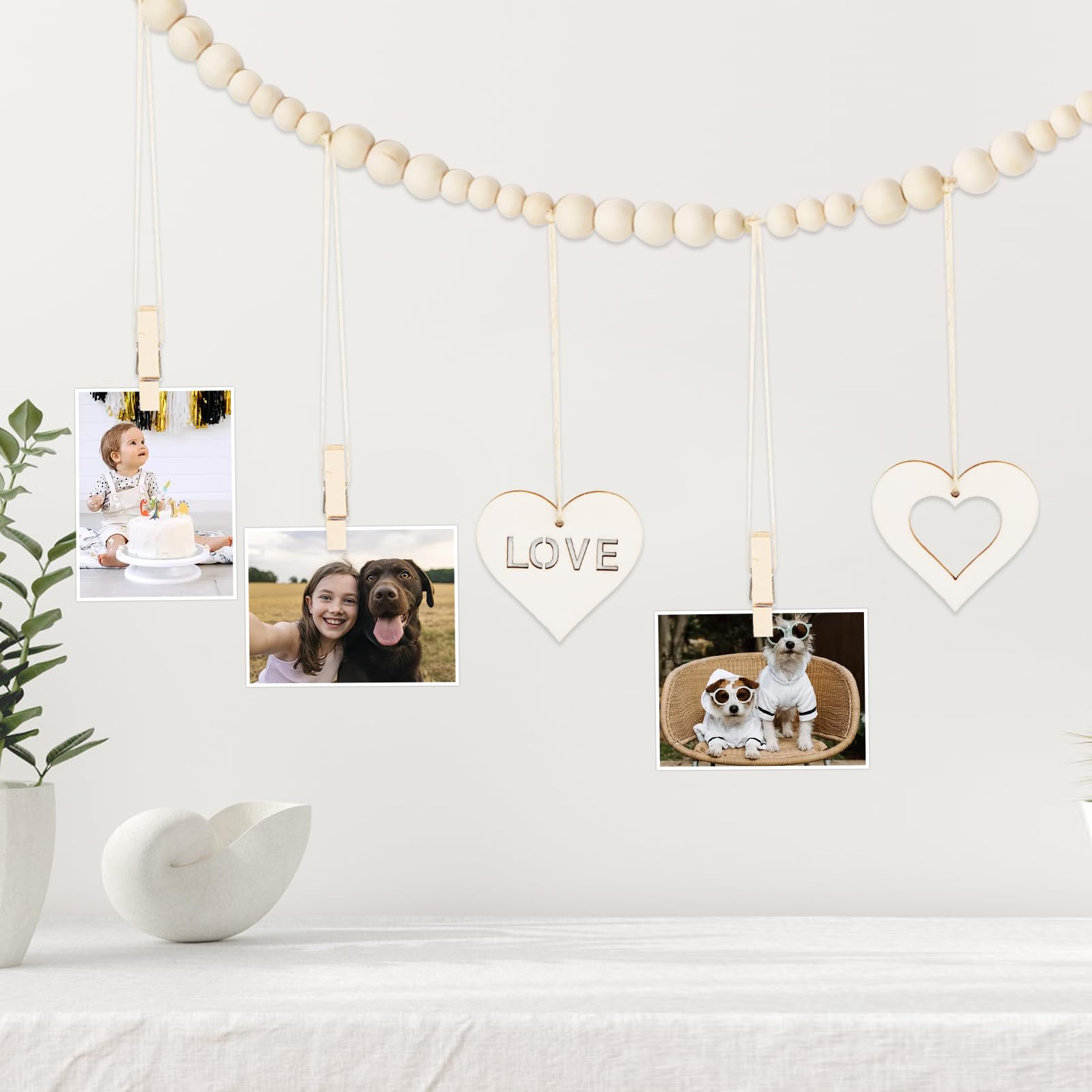 Create your own Foto-Galerie! Dieses charmante Fotoseil aus Naturholz mit 18 süßen Holzklammern verwandelt deine Wand in eine persönliche Erinnerungsecke. Das 110cm lange Juteseil mit dekorativen Holzperlen im Bohemien-Style bringt sofort gemütliche Atmosphäre in jeden Raum. Einfach die Enden an der Wand befestigen, Fotos, Postkarten oder Kunstwerke einklemmen - fertig ist deine individuelle Deko! Perfekt für Urlaubsfotos, Kinderzeichnungen, Liebesbriefe oder Postkarten von Freunden. Das natürliche Holz splittert nicht und ist absolut sicher in der Handhabung. Ob im Wohnzimmer, Schlafzimmer oder Büro - diese Bilderaufhängung macht überall eine gute Figur und erzählt deine persönliche Geschichte!