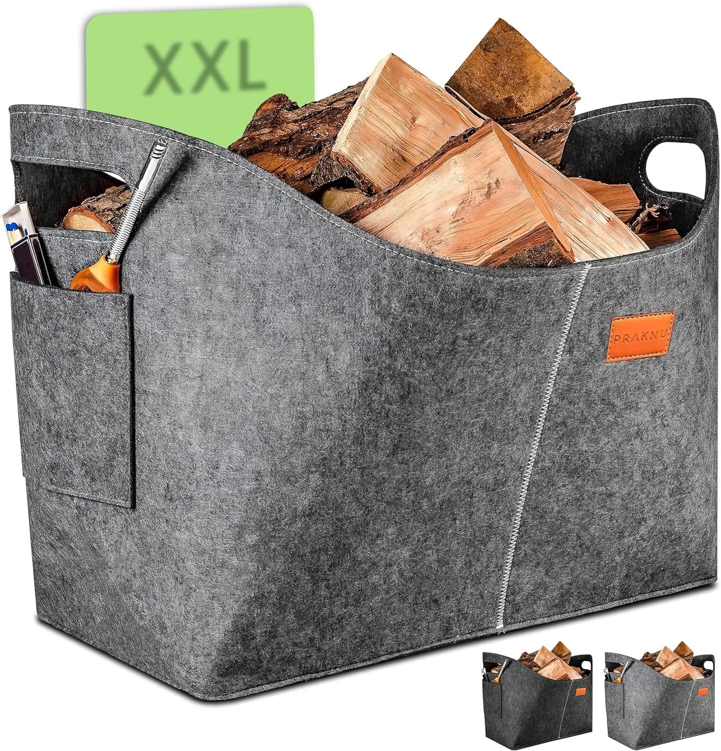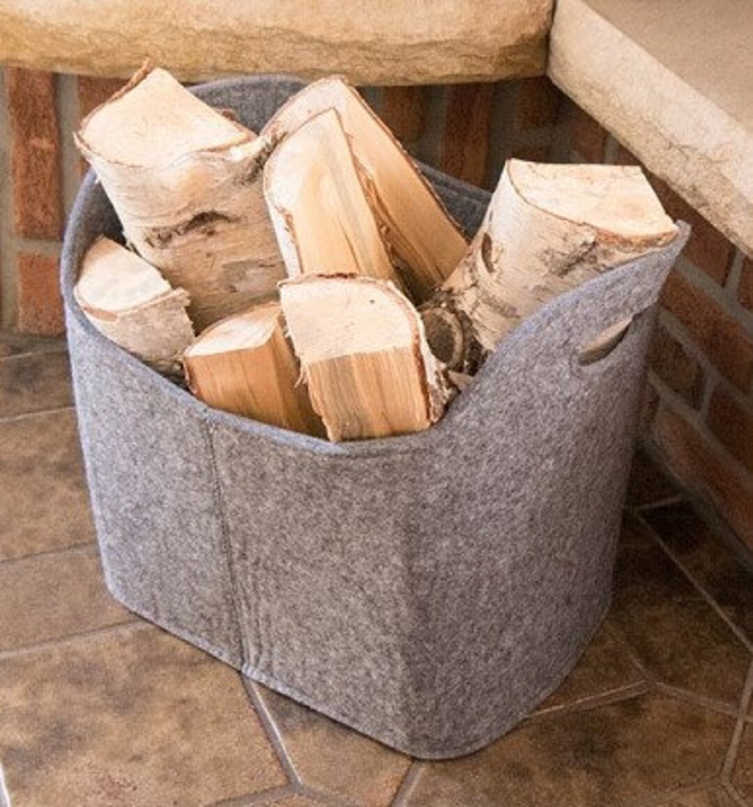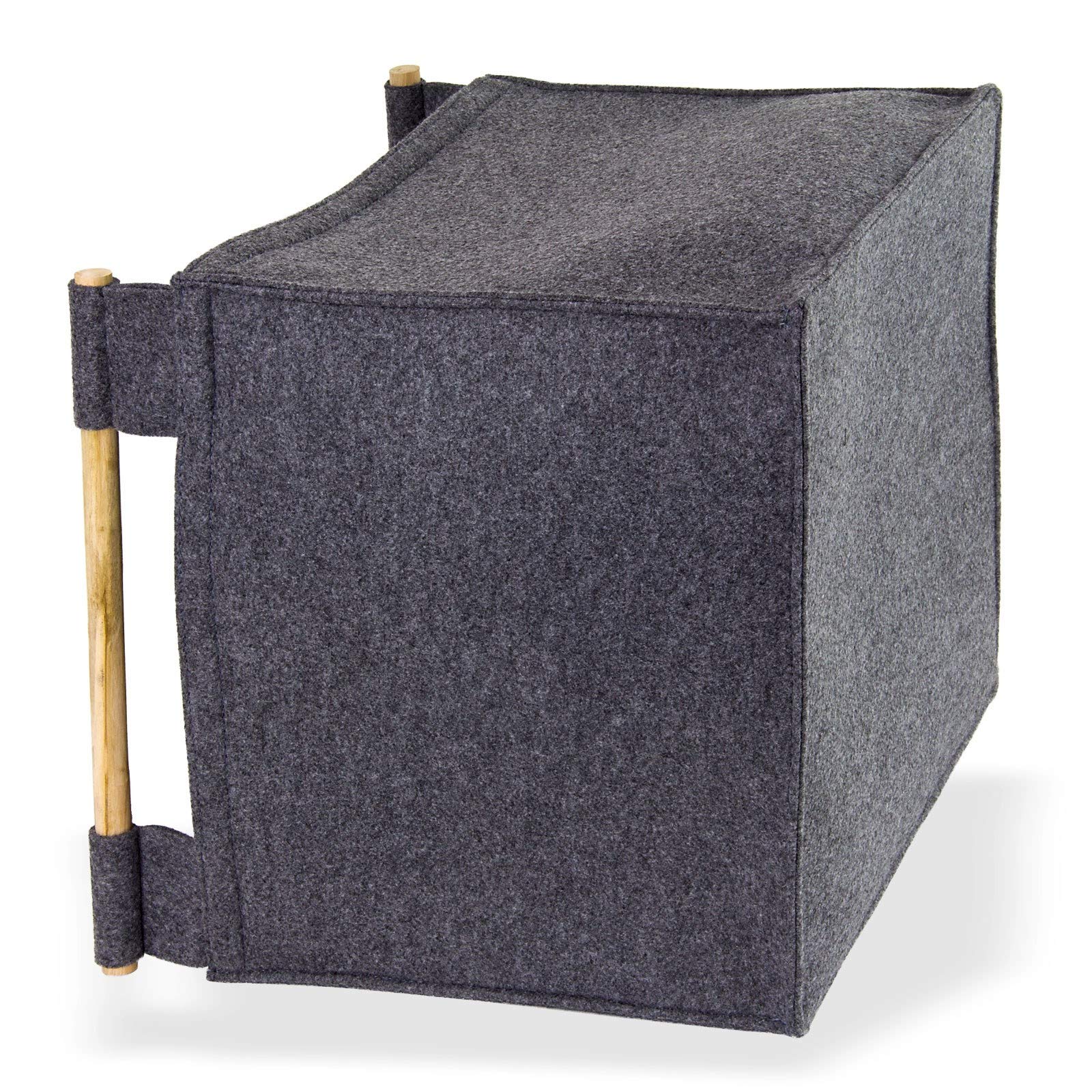 • Denner Filz Holzkorb Für Kaminholz - Grauer Brennholzkorb Mit Holzgriffen 45x41x34 Cm