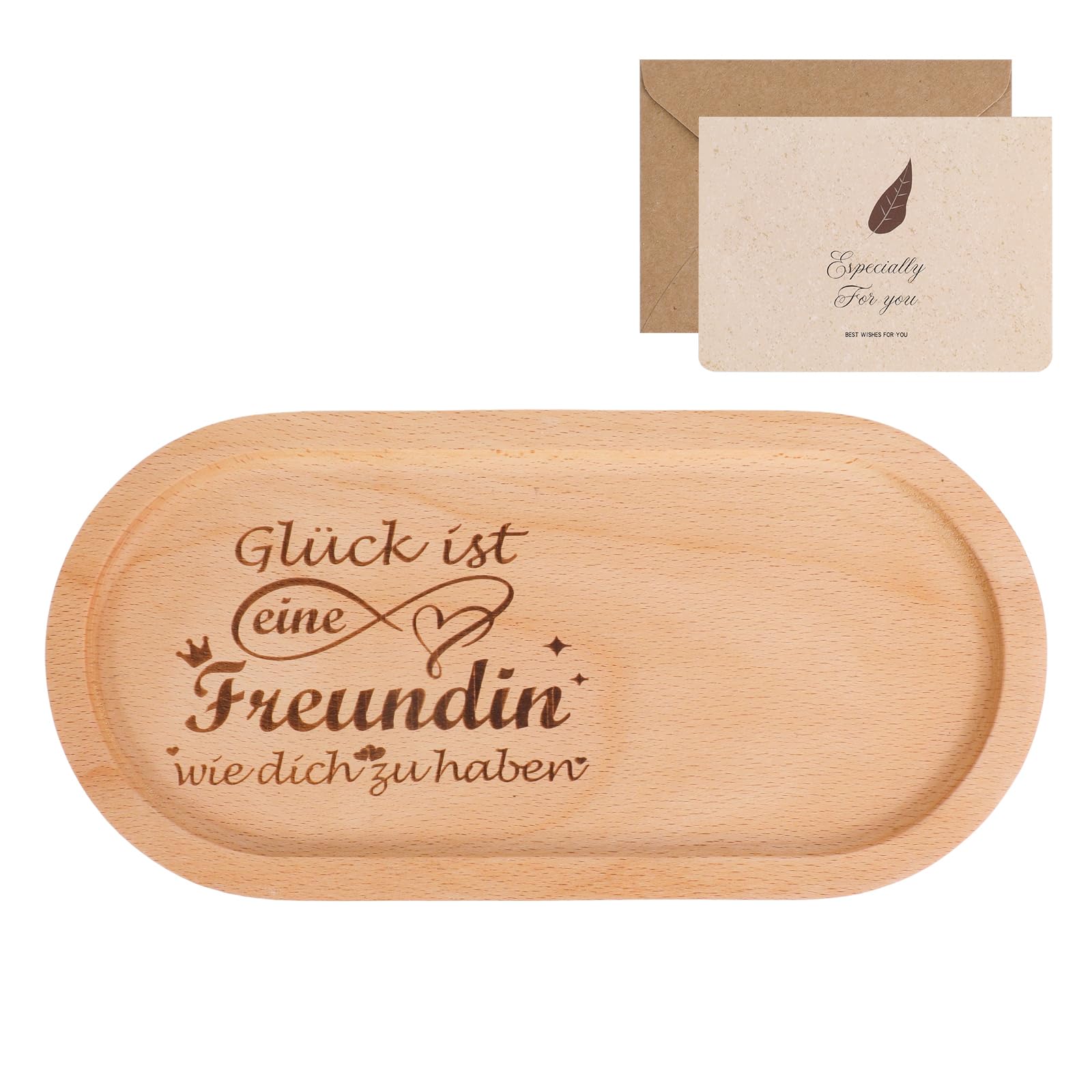Suchst du das perfekte Geschenk für deine beste Freundin? Dieses personalisierte Holztablett mit der süßen Gravur \Glück ist, eine Freundin wie dich zu haben\ kommt direkt von Herzen! Aus einem Stück Buchenholz - natürlich, stabil und langlebig. Maße 25x12cm - perfekt für Schmuck, Snacks oder als Deko. Inklusive Grußkarte für deine persönlichen Wünsche. Ideal für Geburtstage, Weihnachten, Jubiläen oder einfach so. Ein Geschenk, das bleibende Erinnerungen schafft und immer an eure Freundschaft erinnert!