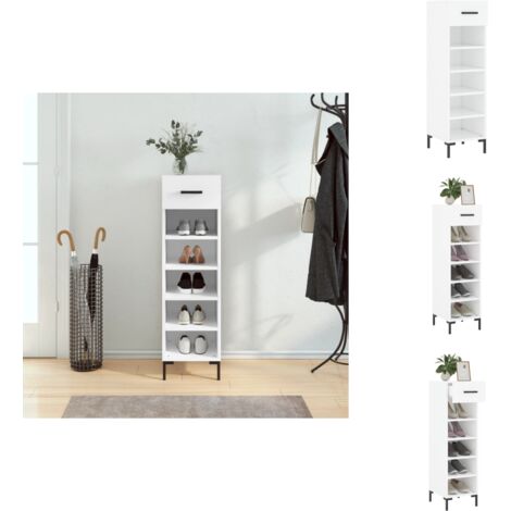 • Schuhschrank Weiß 30x35x100cm - Holzwerkstoff Schrank Mit Tür