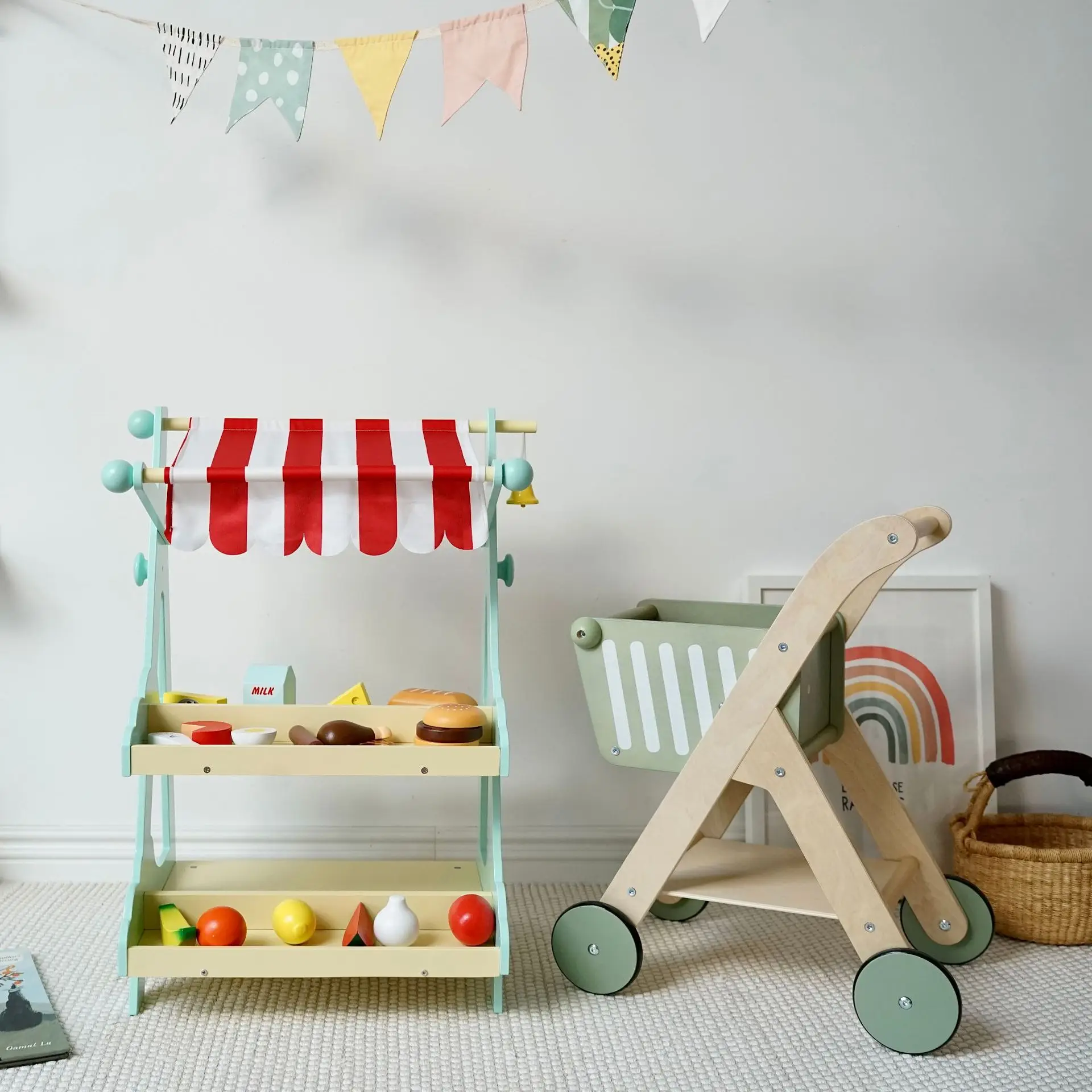 Hergestellt aus nachhaltigem Gummibaumholz mit schönen, ungiftigen Farben bemalt. Das Stoffdach und die liebevollen Details machen diesen Marktstand zum Eyecatcher im Kinderzimmer. Enthalten sind bereits eine Kiste mit Holz-Äpfeln und Birnen sowie eine Stoff-Einkaufstasche.
