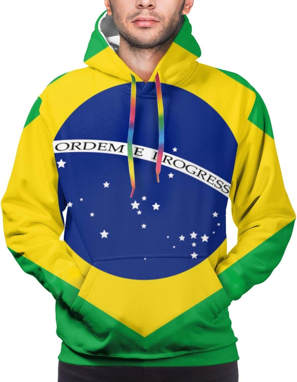Zeig deine Liebe zu Brasilien mit diesem coolen Hoodie! Der auffällige 3D-Druck der Nationalflagge auf Vorder- und Rückseite sorgt für Aufmerksamkeit. Aus weicher, dehnbarer Polyestermischung gefertigt, ist dieser Pullover super bequem und knitterfrei. Die lebendigen Farben verblassen nicht - selbst nach dem Waschen bei 45°C bleibt das Design frisch. Mit praktischer Kängurutasche für Handy und Kleinigkeiten sowie verstellbarer Kapuze mit Kordelzug. Das lockere Design passt sowohl Männern als auch Frauen und sorgt für einen lässigen Streetwear-Look. Ideal für Frühling, Herbst und Winter - das winddichte Design hält dich warm. Perfekt für Sport, Partys, Festivals, Reisen oder einfach für den Alltag. Maschinenwaschbar im Schonwaschgang, nicht bleichen. Ein tolles Geschenk für Brasilien-Fans, Fußball-Begeisterte oder einfach alle, die auffällige Streetwear lieben. In verschiedenen Größen erhältlich - auch in Plus Size! Mach dich bereit für Komplimente!