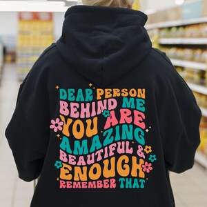 Zeig der Welt, dass du genau richtig bist mit diesem inspirierenden 'You Are Enough' Hoodie! Aus weichem, atmungsaktivem Baumwollmix gefertigt, ist dieser Hoodie super bequem und skinfreundlich. Mit praktischer Kapuze und großer Tasche vorne - perfekt für kalte Hände oder dein Handy. Erhältlich in Größen von XS bis 5XL, also für wirklich jeden! Das coole Design mit der motivierenden Botschaft ist nicht nur ein Fashion-Statement, sondern erinnert dich und andere daran, sich selbst so zu akzeptieren wie man ist. Perfekt für den Alltag, zum Einkaufen, für die Uni oder einfach zum Relaxen. Ein tolles Geschenk für dich selbst oder deine Liebsten zu besonderen Anlässen!