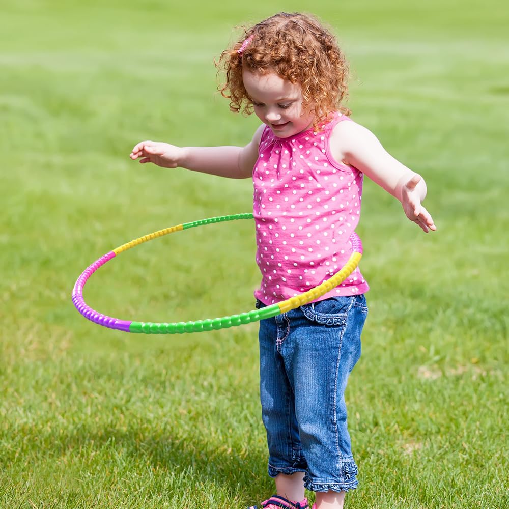 Hey, für alle aktiven Kids gibt's jetzt das ultimative Hula Hoop Set! Zwei bunte Reifen und ein langes Springseil - damit ist Action garantiert. Die Hula Hoops bestehen aus 8 Teilen, die du einfach zusammensteckst. So kannst du die Größe perfekt an jedes Kind von 3 bis 12 Jahren anpassen. Jeder Reifen wiegt nur 100 Gramm - super leicht zu handhaben. Ob im Garten, Park oder Wohnzimmer - hier kommt garantiert keine Langeweile auf. Das Beste: Die Teile sind mega robust und halten auch mal einen heftigen Aufprall aus. Mit dem praktischen Tragebeutel nimmst du das Set überall mit hin. Perfekt für Geschwister, Spieltermine oder den Sportunterricht. Die wellige Oberfläche liegt angenehm an der Hüfte - kein Scheuern! Und wenn du mehr Challenge willst: Füll einfach Sand in die Hohlräume für extra Gewicht. So macht Fitness richtig Spaß und fördert nebenbei noch Koordination und Motorik. Einfach aufbauen, Musik an und loshüpfen!