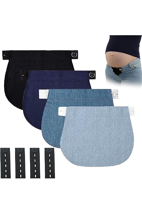 Geniale Lösung für Schwangere! Dieses 3er-Set Hosenerweiterungen macht deine Lieblingshosen wieder passend. Einfach zwischen Knopf und Knopfloch klemmen - schon hast du mehr Platz am Bauch. Aus weichem Denim und Baumwolle, super bequem zu tragen. Elastisches Gummiband passt sich perfekt an. Im Set: 3 Hosenerweiterer in marineblau, schwarz, khaki (je 22x7,5cm) plus 6 BH-Verlängerungen in weiß, schwarz, beige. Maschinenwaschbar und geruchsneutral. Spart dir teure Umstandshosen zu kaufen! Auch super für Männer mit Bierbauch oder wenn man einfach mal mehr Platz braucht. Einfach anbringen und sich über die extra Bequemlichkeit freuen. Ein echter Lifehack für die Schwangerschaft!