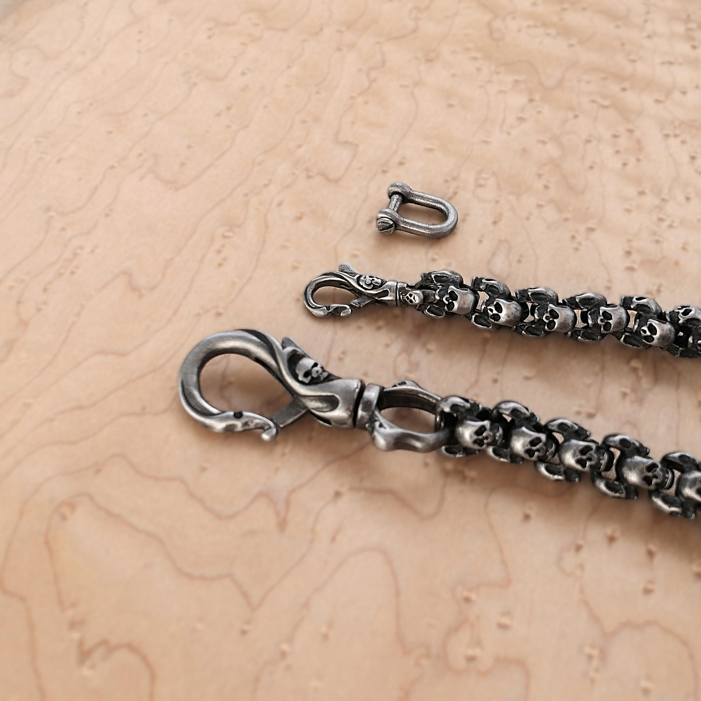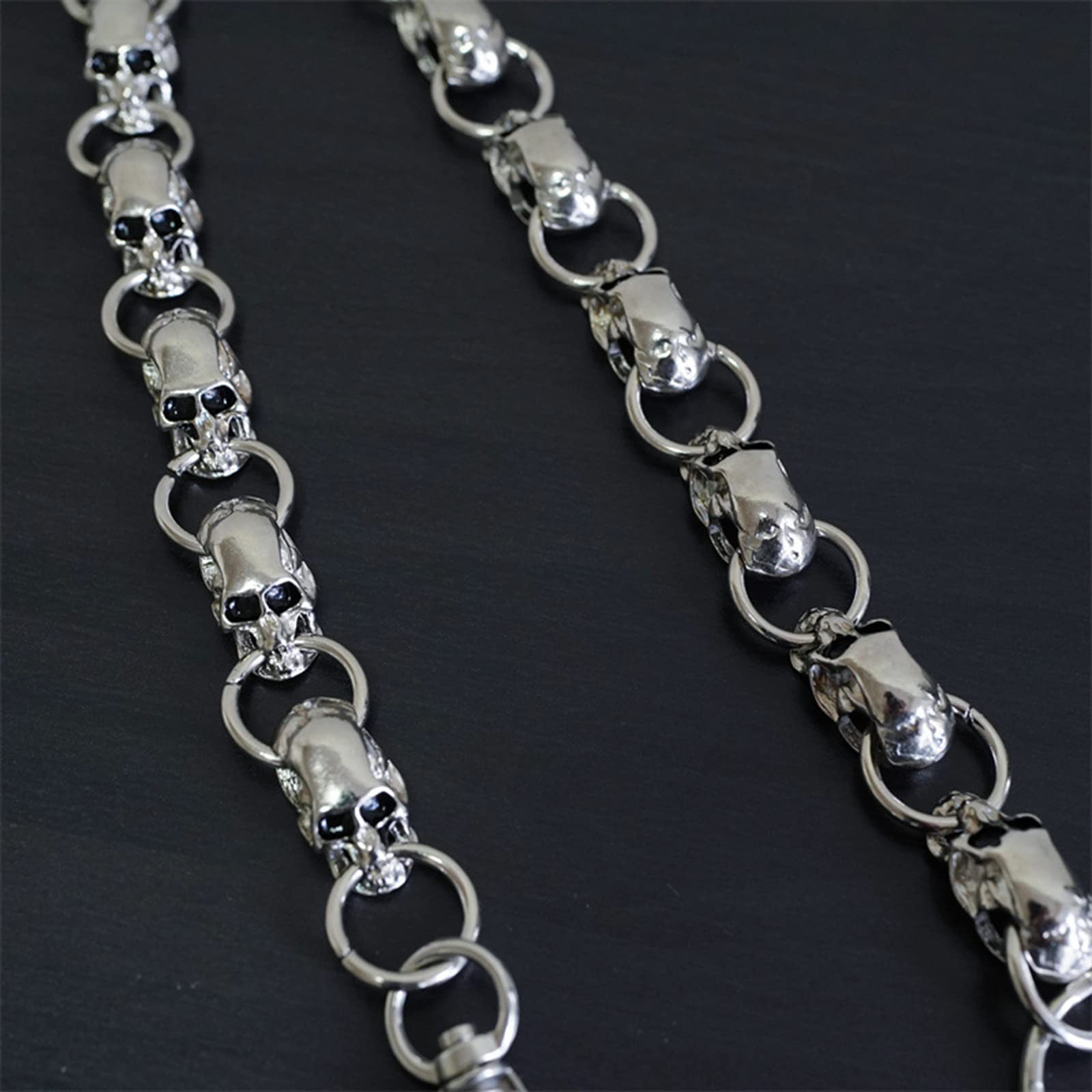 Diese coole Totenkopf-Hosenkette ist ein absolutes Statement-Piece! Aus hochwertiger Legierung gefertigt, verblasst sie nicht und rostet nicht - das Teil hält ewig. Mit 54cm Länge ist sie genau richtig, um deine Geldbörse sicher mit deiner Hose zu verbinden. Die Karabinerverschlüsse an beiden Enden machen das An- und Ausziehen super einfach. Du kannst sie aber nicht nur als Anti-Diebstahl-Kette für deine Geldbörse verwenden, sondern auch als stylische Hosenkette, Taschenkette oder sogar als Halskette. Der Gothic-Punk-Look passt perfekt zu Jeans, Lederhosen oder Biker-Outfits. Ein mega Geschenk für alle, die es etwas anders mögen - ob zu Weihnachten, Geburtstag oder einfach so. Perfekt für Konzerte, Partys oder den täglichen Gebrauch!