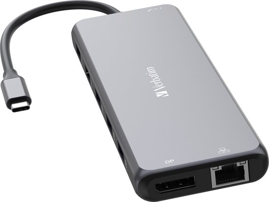 Aus einem Port mach 13! Dieser vielseitige USB-C Hub von Verbatim verwandelt deinen Laptop in eine vollwertige Workstation. Mit 2x HDMI, 1x DisplayPort, SD/Micro SD Kartenleser, Ethernet, 6x USB-A, 2x USB-C PD und Audio-Ausgang hast du alle Anschlüsse, die du brauchst. Unterstützt Ultra HD 4K Auflösung und Datenübertragung bis 10 Gbit/s. Perfekt kompatibel mit MacBook, Windows Laptops, iPad Pro und mehr. Einfach anschließen und sofort Monitore, Festplatten, Netzwerk und Peripheriegeräte nutzen. Der ideale Begleiter für Homeoffice, Unterwegs oder das heimische Arbeitszimmer!