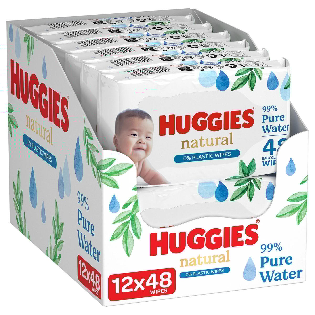 Endlich plastikfreie Feuchttücher die wirklich halten! Huggies Natural enthalten 0% Plastik - die Tücher selbst sind aus 100% Naturfasern, die Feuchtigkeit aus 99% reinem Wasser. Ohne Parfüm und klinisch getestet für empfindliche Babyhaut. Riesen-Packung mit 576 Tüchern (12x48 Stück). Schützen vor Wundsein und erhalten den natürlichen pH-Wert der Haut besser als Baumwolle mit Wasser. Entfernen bis zu 97% der Reizstoffe die Hautausschlag verursachen. Von der British Skin Foundation zugelassen. Auch die Verpackung ist recycelbar. Perfekt für umweltbewusste Eltern die keine Kompromisse bei der Pflege machen wollen. Sanft zur Haut und schonend für die Umwelt. Dein Baby wird's dir danken - und die Natur auch! Einfach das beste Gefühl beim Wickeln - weißt genau was auf Babys Haut kommt.