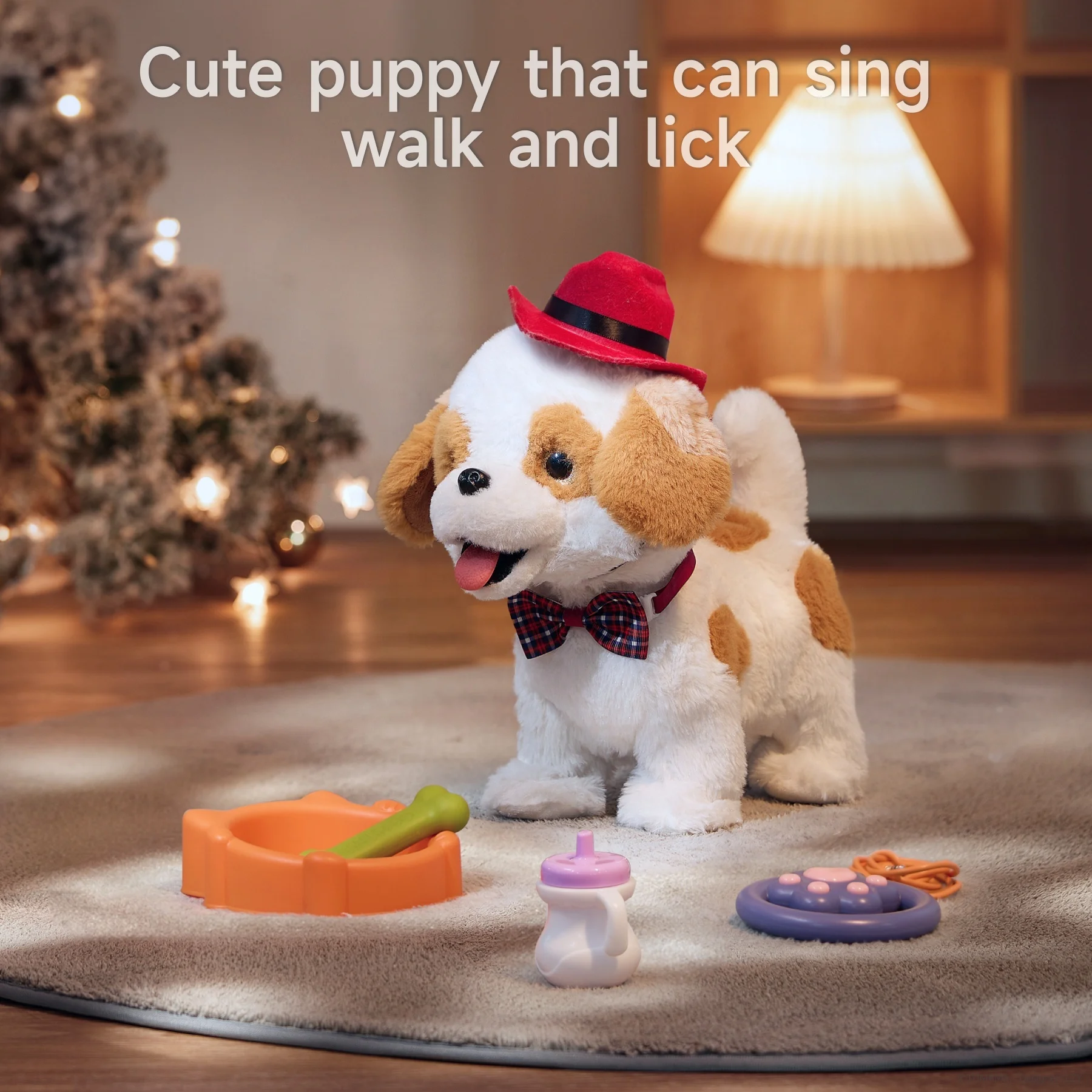 So süß! Dieser elektronische Plüschwelpe von tumama wird zum besten Freund deines Kindes. Der etwa 20cm große Hund kann laufen, bellen, mit dem Schwanz wedeln und den Kopf schütteln. Gesteuert wird er entweder per Fernbedienungsleine oder einfach durch Klatschen und Streicheln. Im Set sind super viele Accessoires dabei: Hundehütte, Hut, Krawatte, Schüssel, Gummiknochen und sogar ein Malset zum Bemalen der Hütte! Benötigt 3 AA-Batterien (nicht im Lieferumfang). Perfekt für Kinder ab 3 Jahren - ein tolles Geschenk zu Geburtstag, Weihnachten oder einfach so. Fördert die Fantasie und macht einfach riesig Spaß!