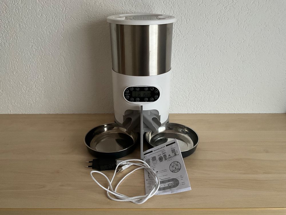 Dein Hund wird pünktlich gefüttert! Dieser Automat hat 9 Liter Fassungsvermögen. Programmierbar für 4 Mahlzeiten täglich mit individuellen Portionen. Mit LCD-Display und Sprachaufnahme-Funktion.