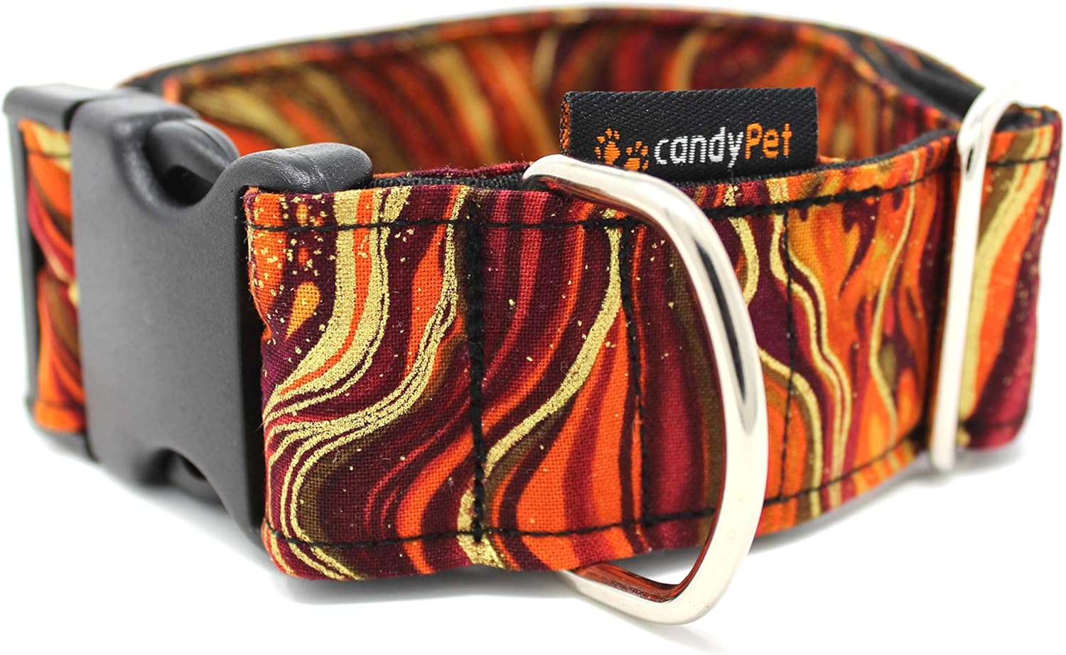 Spaziergänge mit deinem Vierbeiner werden noch angenehmer mit dieser candyPet Hundeleine! Aus dicker Baumwollwebung gefertigt und mit weichem Softshell-Griff - der liegt super in der Hand und ist auch bei längeren Gassirunden super bequem.\\n\\nDer praktische D-Ring am Griff ist perfekt, um Kotbeutelhalter, Leckerli-Taschen oder anderes Zubehör daran zu befestigen. So hast du alles griffbereit, ohne extra Taschen schleppen zu müssen.\\n\\nDie Leine ist richtig stabil gemacht: Verstärkte Nähte und geschweißte Verschlüsse geben dir die Sicherheit, dass dein Liebling gut gesichert ist. Und das Beste: Jede Leine wird in Spanien handgefertigt - da steckt richtig Liebe zum Detail drin!\\n\\nMit 120 cm Länge gibt's genug Spielraum für deinen Hund, aber du behältst immer die Kontrolle. Die bedruckte Baumwolle sieht nicht nur schick aus, sie ist auch robust. Natürlich ist Baumwolle ein Naturmaterial - mit der Zeit zeigt sie Gebrauchsspuren, aber das gibt ihr doch erst Charakter, oder?