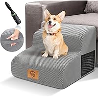 Diese 3-stufige Hundetreppe ist perfekt für kleine Hunde und Katzen! Mit 35cm Höhe hilft sie deinem Liebling bequem aufs Sofa, Bett oder ins Auto zu kommen. Der hochelastische Schwamm innen trägt bis zu 50lbs und gibt guten Halt. Die wasserdichte Schicht und der abnehmbare Bezug mit Reißverschluss machen die Reinigung super einfach - waschbar in der Maschine! Rutschfeste Silikon-Pfotenabdrücke an der Unterseite sorgen für Stabilität. Die sanfte Neigung entlastet die Gelenke deines Haustiers - ideal für ältere Tiere, kurzbeinige Rassen oder Tiere mit Verletzungen. Maße: 56x40x35cm (LxBxH). Kommt vakuumverpackt - braucht nach dem Auspacken etwa 48 Stunden zum Aufrichten. Mit 1 Jahr Garantie!