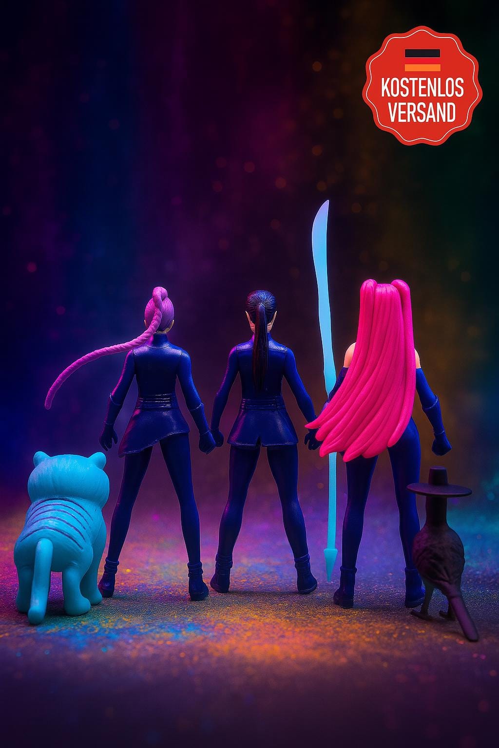 Oh wow, für alle Huntrix-Fans! Dieses 3er Set mit den beliebten Charakteren Rumi, Mira und Zoey ist einfach nur krass! Jede Puppe ist 29cm groß und originalgetreu nach den Film-Figuren gestaltet. Mit super vielen beweglichen Gelenken an Schultern, Ellbogen, Handgelenken, Hüften, Knien und Knöcheln - da sind alle möglichen Posen drin! Aus hochwertigem, ungiftigem Kunststoff der nicht bricht oder sich verformt. Die coolen Kostüme und Accessoires sind abnehmbar und austauschbar - immer wieder neue Styles möglich! Perfekt zum Sammeln, Spielen oder als Fan-Geschenk. Damit können Kinder Szenen aus dem Film nachspielen oder eigene Abenteuer erfinden. Die glatte, gratfreie Oberfläche ist absolut sicher für Kinderhände. Ein Traum für jeden Huntrix-Liebhaber!
