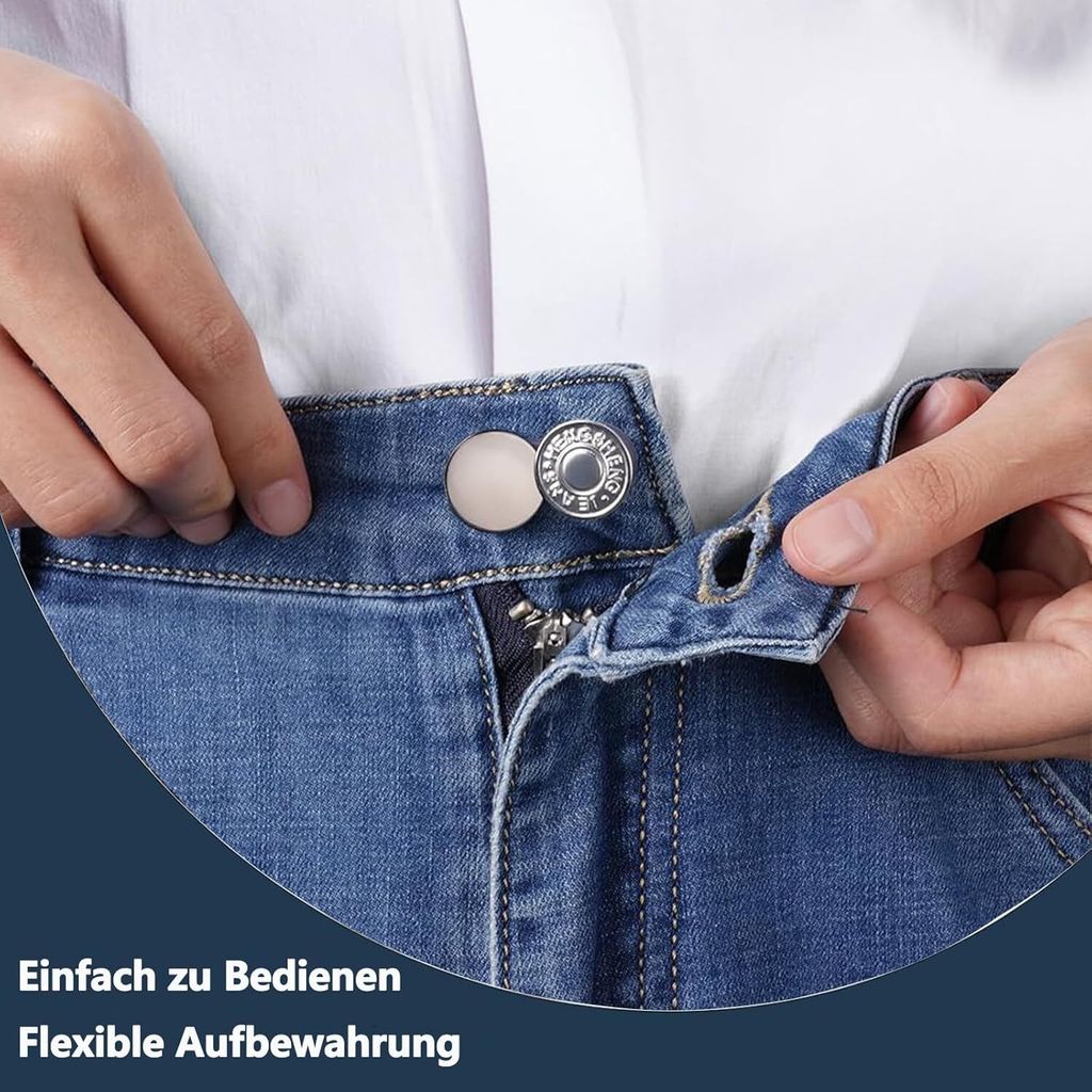Wenn die Hose mal wieder zu eng sitzt! Diese praktischen Hosenbund-Verlängerer schaffen sofort bis zu 5cm mehr Platz. Im 10er-Set mit verschiedenen Größen und Designs für alle Hosenarten. Aus Metall und hautfreundlichem Silikon, komplett ohne Nähen anzubringen. Einfach zwischen Knopf und Stoff klemmen - schon sitzt die Hose wieder perfekt. Ideal für Schwangere, nach dem Essen oder wenn man einfach mal mehr Bewegungsfreiheit braucht. Wiederverwendbar und diskret. Ein echter Lebensretter für deine Lieblingsjeans!
