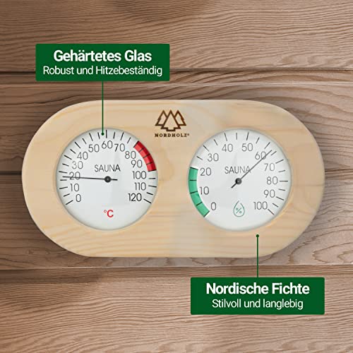 NORDHOLZ Sauna Thermometer Hygrometer 2in1 - Analog Für Sauna & Infrarotkabine