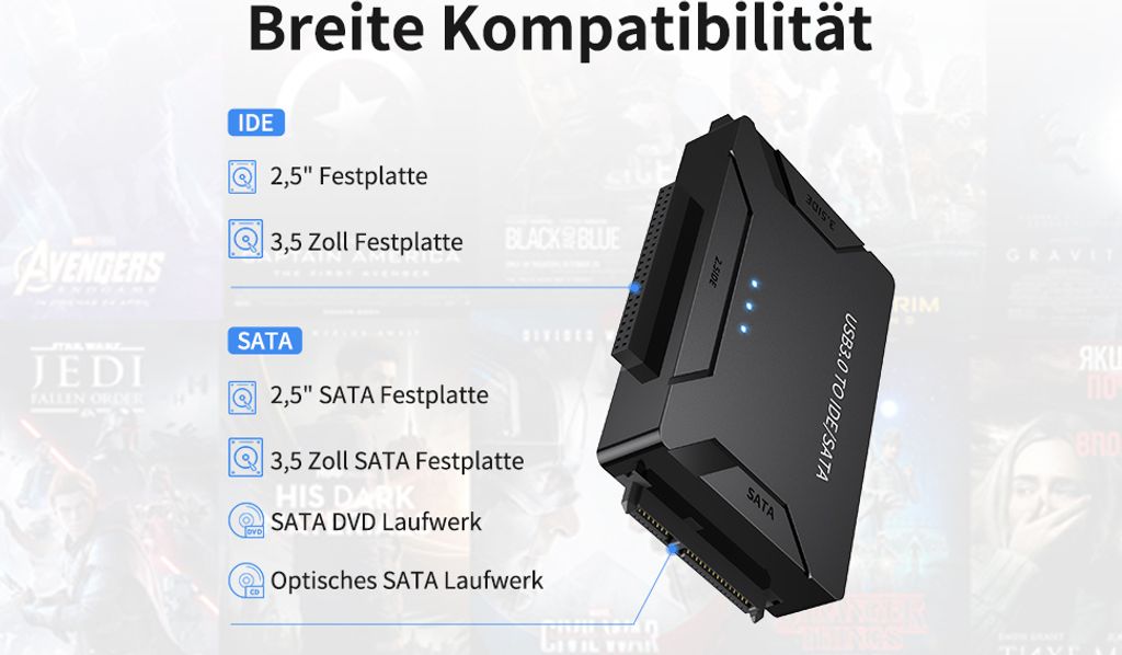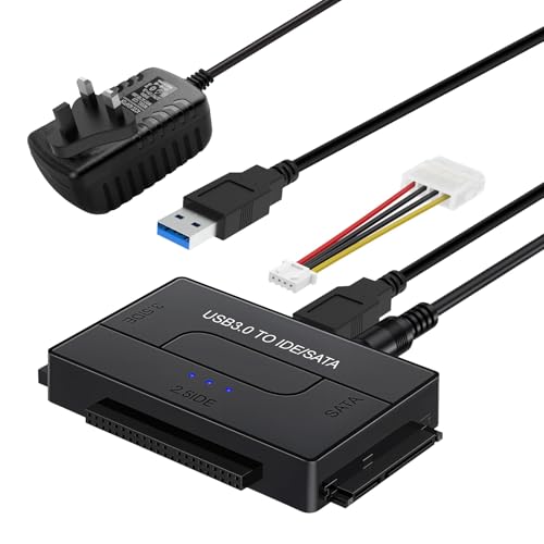 Rette deine alten Festplatten und mache sie wieder nutzbar! Dieser Behogan Adapter verbindet sowohl SATA als auch IDE Festplatten bequem per USB 3.0 mit deinem Computer. Perfekt für 2,5\ und 3,5\ Festplatten - einfach anschließen und sofort Daten übertragen, ohne komplizierte Treiberinstallation. Das mitgelieferte 12V/2A Netzteil sorgt für stabile Stromversorgung auch bei leistungs hungrigen 3,5\ Festplatten. Mit 100cm Kabellänge genug Spielraum für flexible Positionierung. Ideal für Datenbackup, Festplatten-Cloning, System-Neuinstallation oder Datenwiederherstellung. Nicht nur für PCs und Laptops geeignet, sondern auch für Smart-TVs, Projektoren und andere Geräte mit USB-Anschluss. Das kompakte Design macht den Adapter leicht transportierbar - super für unterwegs oder den Einsatz in verschiedenen Umgebungen. Ob du alte Familienfotos retten, wichtige Dokumente sichern oder einfach zusätzlichen Speicherplatz schaffen willst - dieser vielseitige Adapter ist deine Lösung. Ein unverzichtbares Tool für jeden Technik-Enthusiasten!