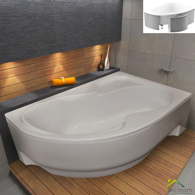 Diese Badewanne ist einfach nur traumhaft! Die INTIMA Eckwanne in 180x125 cm bietet dir luxuriösen Badekomfort. Aus hochwertigem Acryl gefertigt, hält sie ewig, ist kratzfest und vergilbt nicht. Die antibakterielle Beschichtung sorgt für perfekte Hygiene. Im 7in1-Set enthalten: Badewanne, Acrylschürze, Bambus-Ablage und 2 Nackenkissen. Die Ablage ist verstellbar (69.5-104 cm) und hat Platz für Buch, Tablet, Weinglas und sogar dein Handy. Die Kissen mit Saugnäpfen sorgen für ultimative Entspannung. Die Wanne hält die Wassertemperatur super lange und die rutschfeste Oberfläche gibt Sicherheit. Made in EU - Qualität die überzeugt. Verwandele dein Bad in eine persönliche SPA-Oase!