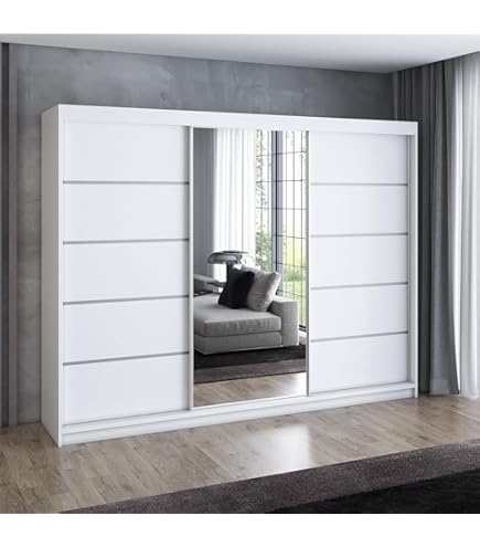 Wow, dieser Schrank hat wirklich alles was man braucht! Der A&J MöbelLand IOSA Schwebetürenschrank bietet unglaublich viel Stauraum auf 200cm Breite. Mit 3 Schiebetüren, 4 Schubladen, 2 Kleiderstangen und 8 Regalfächern findet alles seinen Platz - Kleidung, Schuhe, Accessoires, sogar die Bettwäsche. Die modernen 3D-Lamellen an den Türen sehen nicht nur super stylisch aus, sondern sorgen auch für gute Belüftung. Das SEVROLL-System macht das Öffnen der Türen ganz leicht und leise. Hergestellt aus 16mm laminierten Platten mit Aluminium-Griffen und Metall-Kleiderstangen - richtig robust und langlebig. Maße: 200cm breit, 215cm hoch und 59,5cm tief. Perfekt fürs Schlafzimmer oder die Ankleide. Die Lieferung kommt in handlichen Paketen mit Montageanleitung - zu zweit ist der Aufbau schnell erledigt. Ein echter Hingucker der viel Platz bietet!