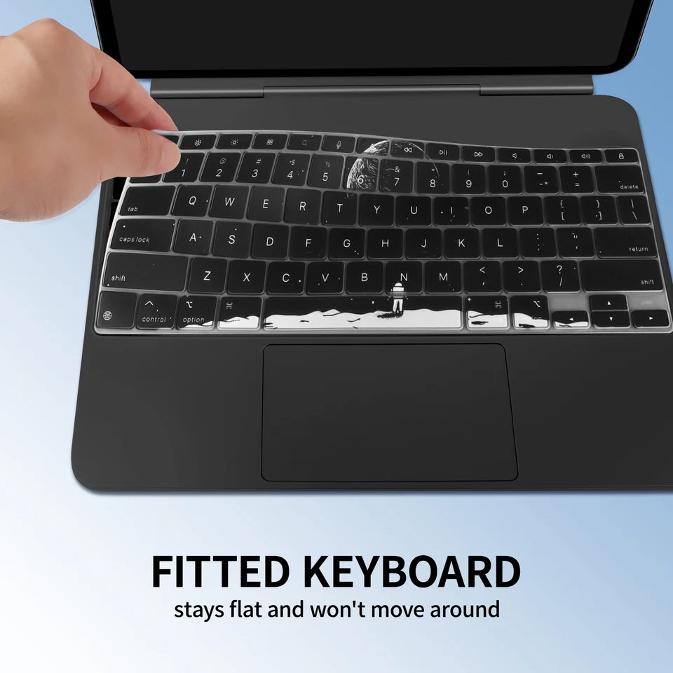 Dein iPad Magic Keyboard ist dir was wert? Dann schütze es mit dieser ultra-dünnen Tastaturabdeckung! Hergestellt aus hochwertigem TPU-Material mit nur 0,12mm Stärke - so dünn, dass du kaum spürst, dass sie da ist. Die Tasten bleiben trotzdem super gut bedienbar und die Hintergrundbeleuchtung scheint problemlos durch.