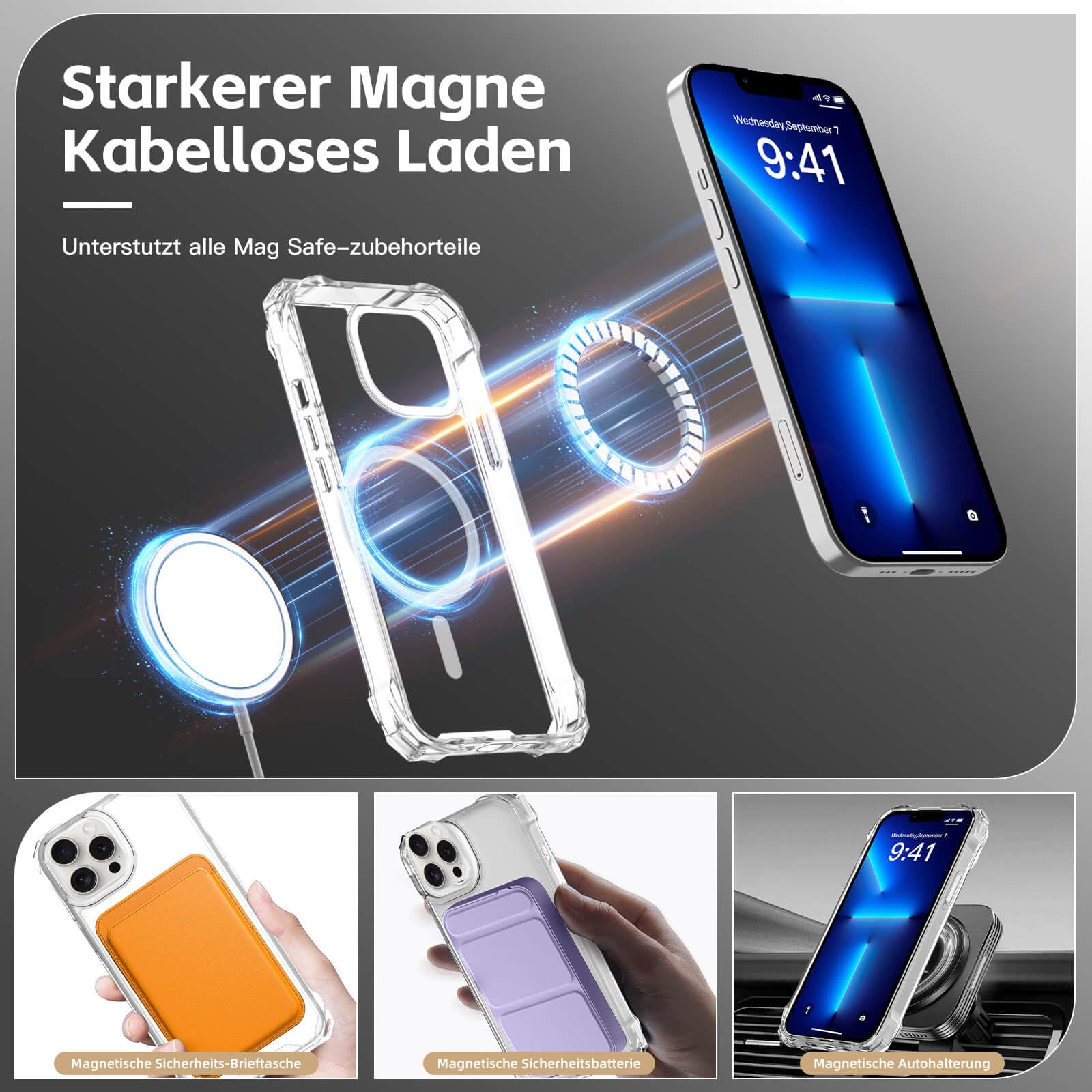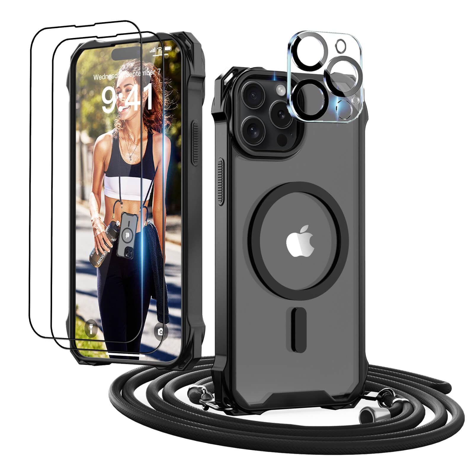 Wow, diese iPhone 17 Pro Hülle hat echt alles, was du brauchst! Komplett-Set inklusive: Schutzhülle, verstellbare Handykette (ca. 160 cm), 2x Panzerglas für den Display und 2x Kameraschutz! Die coole orange Farbe sieht mega stylisch aus und die transparente Hülle zeigt dein iPhone in voller Pracht. Das integrierte MagSafe sorgt für perfekten Halt an allen kompatiblen Ladegeräten und Halterungen - kabelloses Laden klappt problemlos durch die Hülle hindurch. Die Handykette ist super praktisch: Lässt sich verstellen, sodass du entscheiden kannst, wie du dein Phone tragen willst - um den Hals, über die Schulter oder einfach in der Hand. Besonders sicher: Der erhöhte Rand schützt Display und Kamera vor Kratzern, und mit dem Panzerglas bist du doppelt abgesichert. Perfekt für unterwegs, beim Einkaufen oder auf Reisen - so geht dein Handy garantiert nicht verloren! Und wenn du mal keine Kette brauchst, kannst du sie einfach abnehmen. Einfach das beste Rundum-Sorglos-Paket für dein neues iPhone 17 Pro - stylisch, sicher und super praktisch!