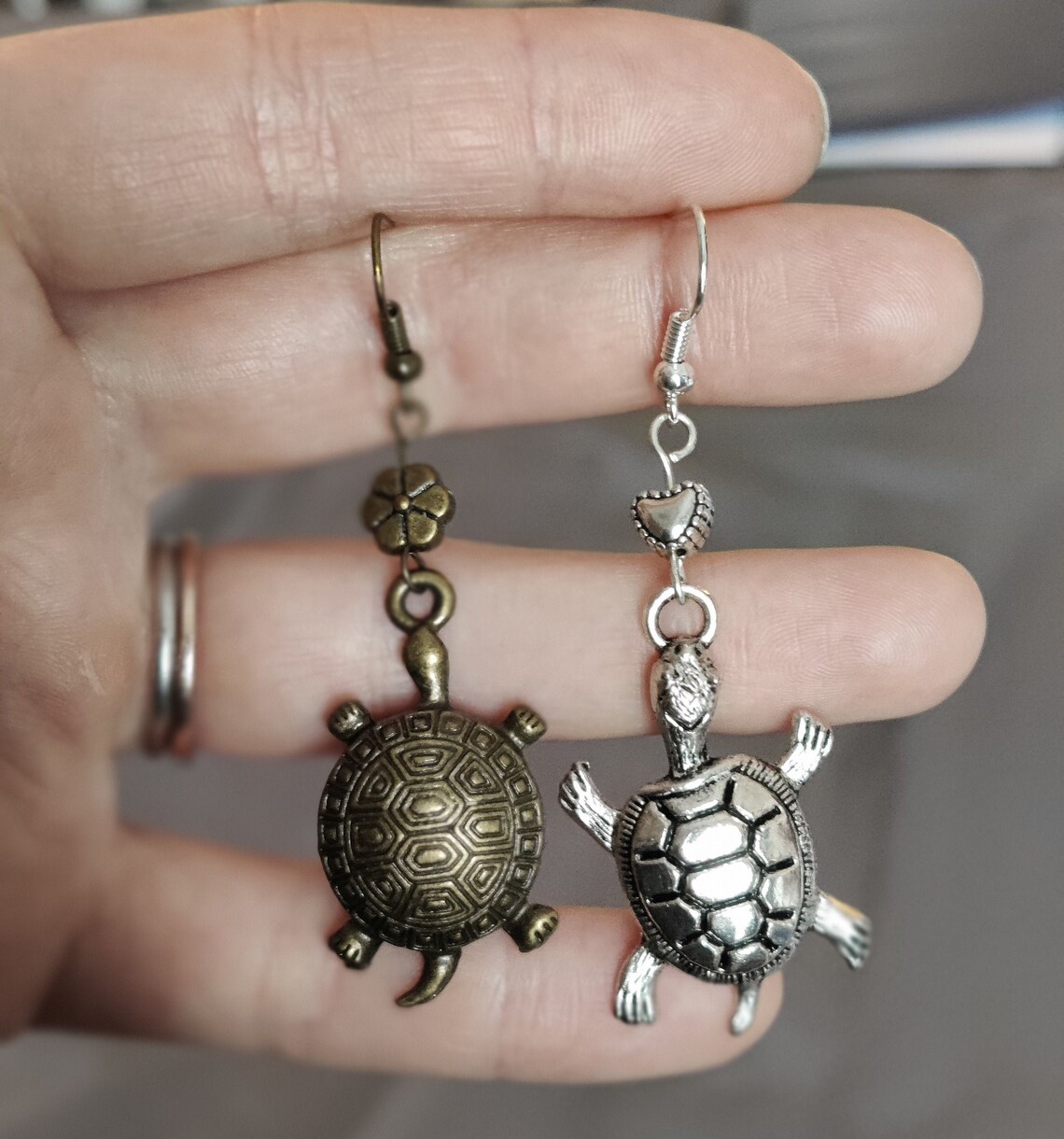 Wie niedlich sind denn diese Schildkröten-Ohrringe! Komplett handgefertigt aus Holz - das merkt man einfach. Jedes Paar ist ein Unikat mit liebevollen Details. Mit ca. 4,5cm Länge (inklusive Hänger) sind sie auffällig aber nicht zu groß. Perfekt für alle die ausgefallenen Schmuck lieben - weg von der Massenware! Die Holz-Oberfläche fühlt sich angenehm an und ist leicht. Super für Sommer-Looks, Urlaub oder einfach um mal was Anderes zu tragen. Als Geschenk ideal - hübsch verpackt und durch die Handarbeit etwas Besonderes. Passt zu casual Outfits genauso wie zu festlicher Kleidung. Einfach zeitlos schön und durch das Motiv verspielt. Echt ein Hingucker!