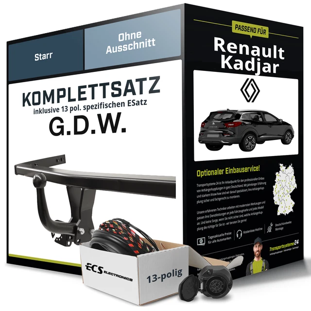Mensch, diese Anhängerkupplung für den Renault Espace IV ist genau das Richtige für alle, die gerne Anhänger ziehen! Passt perfekt für Espace 4 IV JK und Grand Espace IV von 11/2002 bis 2014. Von Steinhof produziert - einem zertifizierten Hersteller mit über 50 Jahren Erfahrung und ISO 9001:2008 Zertifizierung. Starr ausgeführt mit D-Wert von 11,3 kN und bis zu 2000 kg Anhängelast sowie 80 kg Stützlast. Mit dabei: ein universaler 13-poliger E-Satz von Quasar mit Blinküberwachung und Anhängererkennung. EC-geprüft - keine separate TÜV-Abnahme nötig! Alle notwendigen Teile inklusive Montageanleitung und Garantie. Die Elektrik bedient alle Funktionen inklusive Rückfahrlicht. Einfach ein solides Komplett-Set für alle, die ihren Espace fit für Anhänger machen wollen. Damit bist du legal und sicher unterwegs - ob für Urlaub, Umzug oder Transport!