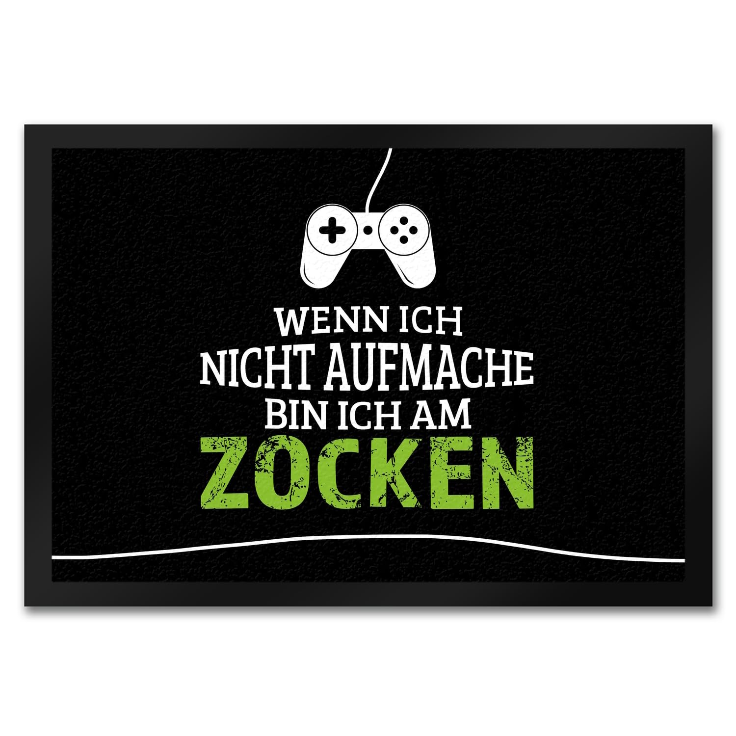 Die perfekte Fußmatte für alle Zocker! Mit dem lustigen Spruch 'Wenn ich nicht aufmache bin ich am zocken' und coolen Controller-Motiven. Aus strapazierfähiger Kunstfaser, ca. 50x35cm groß. Die rutschfeste Gummiunterseite sorgt für sicheren Halt, der Gummirand gibt der Matte eine schöne Form. Der hochwertige Druck in satten Farben ist ein echter Hingucker vor deiner Zimmertür. So weiß jeder Bescheid, warum du mal nicht ans Telefon gehst oder die Tür nicht öffnest - du bist gerade mitten im wichtigsten Match! Ein lustiges Geschenk für Gaming-Freunde oder einfach für dich selbst. Endlich eine Matte, die deine Leidenschaft perfekt ausdrückt!