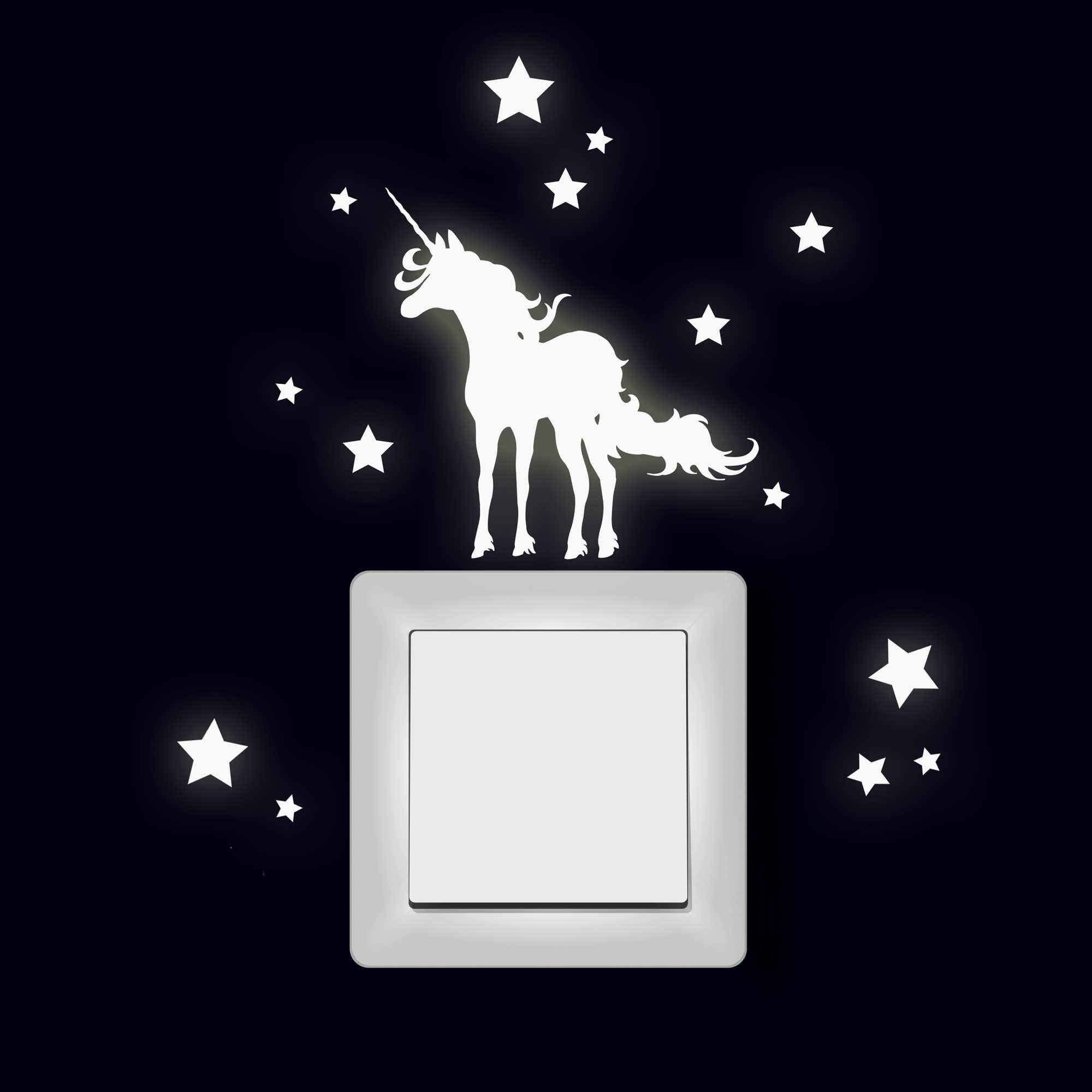 Wow, dieses Einhorn Lichtschaltertattoo von ilka parey ist einfach magisch! Stell dir vor: Ein niedliches Einhorn mit 9 funkelnden Sternen, das an deinem Lichtschalter klebt und im Dunkeln richtig schön leuchtet! Das Besondere: Die Folie lädt sich bei Tageslicht oder künstlichem Licht auf und leuchtet dann bis zu 5-6 Stunden lang. Perfekt fürs Kinderzimmer, aber auch für alle, die sich ein bisschen Magie ins Zuhause holen wollen. Mit 18x16,5 cm ist es genau die richtige Größe für jeden Lichtschalter. Hergestellt wird es übrigens in Deutschland aus hochwertiger, seidenmatter Folie. Das Beste: Es ist 100% raufasertauglich und lässt sich rückstandslos wieder entfernen. Egal ob auf Tapete, Glas, Metall oder Möbeln - es hält super, ohne Spuren zu hinterlassen. Einfach aufkleben, aufladen lassen und abends den Zauber genießen! Macht jedes Zimmer gleich viel gemütlicher und ist ein absoluter Hingucker für Groß und Klein.