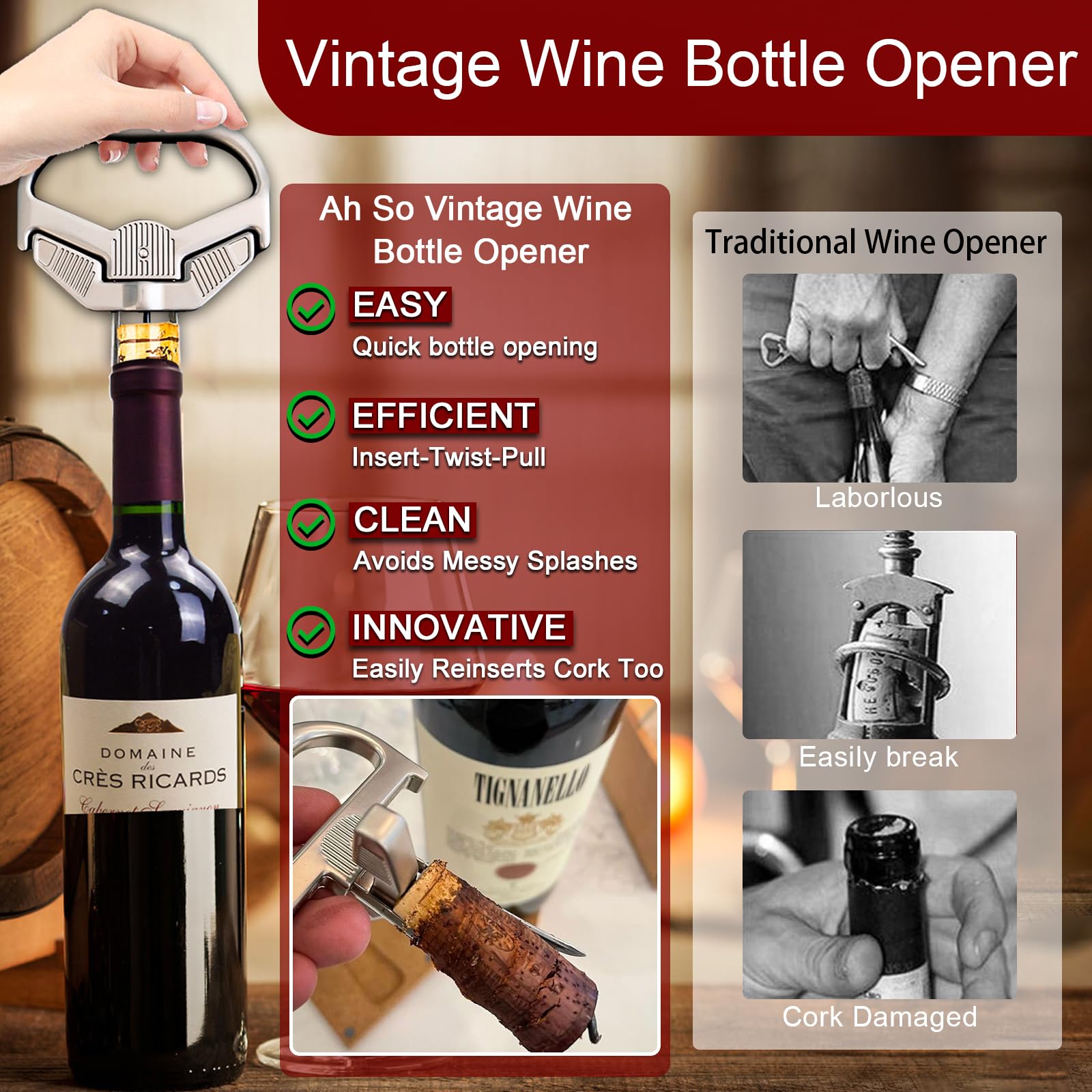 Wein-Kenner aufgepasst! Dieser besondere Ah So Öffner ist speziell für kostbare alte Weine gemacht. Im eleganten Gentleman-Design sieht er nicht nur klasse aus, sondern ist auch praktisch: Er öffnet selbst bröckelige Korken von 30+ Jahre alten Weinen, ohne sie zu beschädigen. Das Geheimnis: Die doppelseitige Stützklinge und die spezielle Hebelwirkung. Jedes Stück durchläuft 12 Galvanisierungsprozesse - daher ist die Ausbeute nur 25%, also wirklich besonders. Inklusive stylischer Geschenkbox und Grußkarte. Perfekt als Geschenk für Weinfreunde oder als Familien-Erbstück. Mit lebenslanger Garantie - denn gute Weine brauchen Zeit, und dieser Öffner begleitet sie!