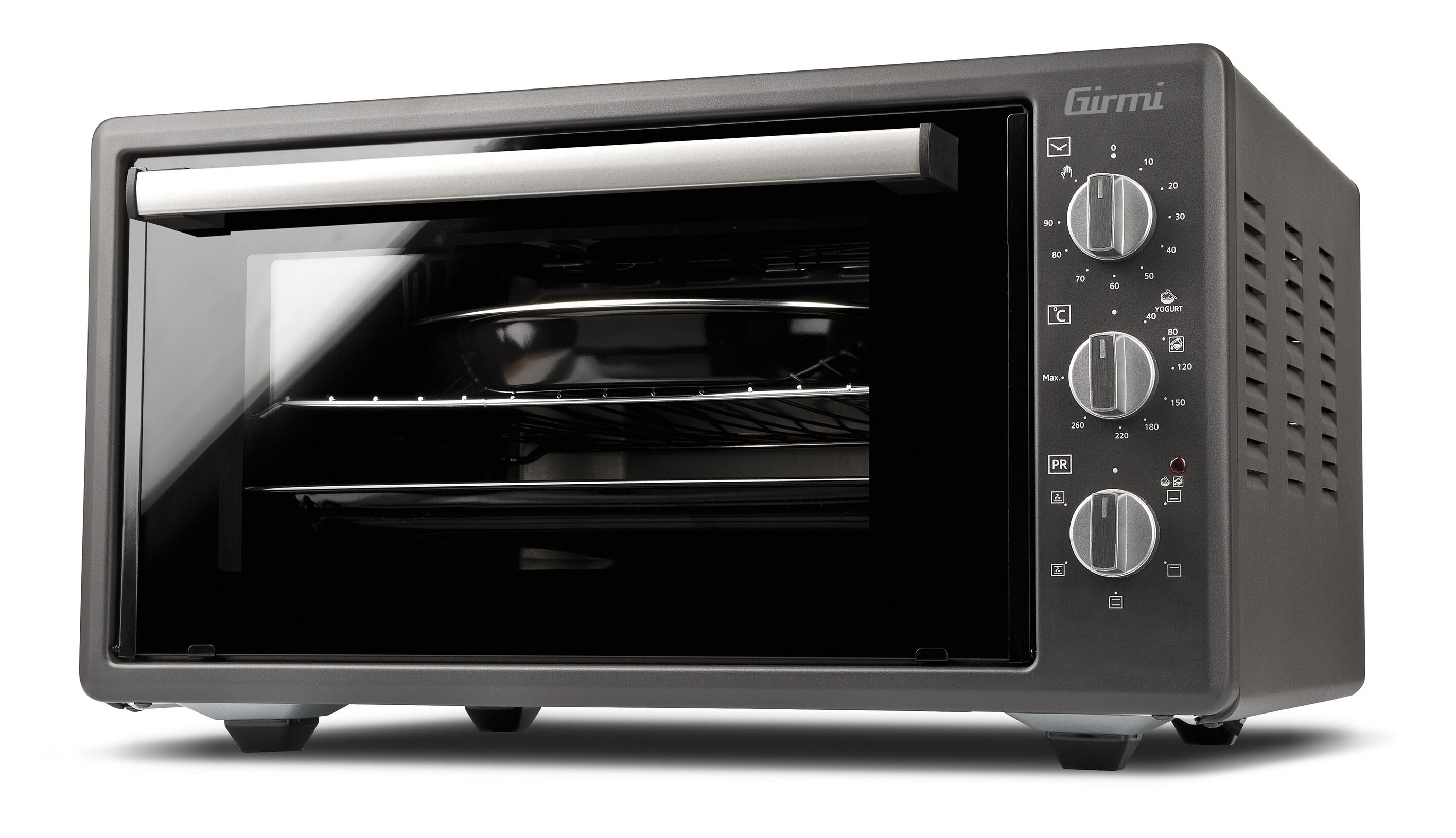 Wow, dieser kompakte Elektroofen von Girmi ist echt praktisch! Mit seinen 30 Litern Fassungsvermögen passt er sogar Teller bis 31 cm Durchmesser - super für kleine Küchen oder als Zweitofen. Die Umluft-Funktion sorgt dafür, dass dein Essen gleichmäßig und schnell gart, und das bei niedrigem Stromverbrauch. Du kannst zwischen drei Funktionen wählen: Standard-Backen, Grill für knusprige Oberflächen oder die Kombination von beidem. Der Timer lässt sich bis 60 Minuten einstellen und piept, wenn's fertig ist. Die Innenbeleuchtung zeigt dir immer, wie's aussieht, ohne die Tür öffnen zu müssen. Von 100°C bis 230°C ist alles einstellbar - perfekt für Pizza, Aufläufe oder sogar Brotbacken. Die vier Heizwiderstände aus Stahl und das doppelte Glas sorgen für gute Wärmeisolierung. Mit dabei sind Grillrost, Backblech und Grifflöffel. Bei 1600W Leistung und 220-240V Anschluss ist er ideal für Studentenbude, Büro oder kleine Haushalte. Einfach einstecken und losbacken!