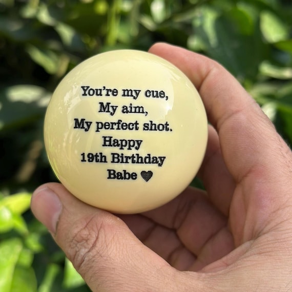 Suchst du ein ganz besonderes Geschenk für einen Billard-Fan? Diese personalisierte Billardkugel ist genau das Richtige! Mit 57mm Durchmesser hat sie die Standardgröße für professionelles Spiel, aber durch die individuelle Gravur wird sie zum absoluten Unikat. Du kannst jeden beliebigen Text, Namen oder sogar dein Logo gravieren lassen - der Kreativität sind keine Grenzen gesetzt! Hergestellt aus hochwertigem Harz fühlt sich die Kugel richtig professionell an und liegt perfekt in der Hand. Die klassische eiskaltweiße Farbe sieht edel aus und die Gravur ist sauber und präzise ausgeführt. Ob zur Hochzeit, zum Jubiläum oder einfach als Überraschung für den Papa oder Ehemann - dieses Geschenk kommt garantiert an! Die Kugel eignet sich sowohl zum Spielen als auch als Sammlerstück. Ein echter Hingucker in jedem Spielzimmer! Und das Beste: Die Personalisierung ist ganz einfach - du gibst einfach deinen Wunschtext an und wir erledigen den Rest. So bekommst du ein Geschenk, das es wirklich nur einmal gibt!