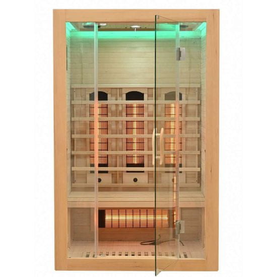 Wellness für zwei! Die SANOTECHNIK Infrarotkabine MALMÖ 2 ist deine private Wohlfühloase für gemeinsame Entspannung. Mit den Maßen 120x105x190 cm bietet sie komfortabel Platz für zwei Personen. Ausgestattet mit 6 Vollspektrum-Strahlern und 2 Carbon-Heizplatten (insgesamt 2.800 W) sorgt sie für intensive Tiefenwärme, die Muskeln und Gelenke wunderbar entspannt. Das LED-Farblichtsystem mit 7 Farben kreiert eine gemütliche Atmosphäre, dazu gibt es praktisches Leselicht. Musikalische Untermalung liefert das Bluetooth-Audiosystem mit 2 Lautsprechern - steuerbar über das Touch-Display. Gefertigt aus 8 mm ESG-Sicherheitsglas und FSC-zertifiziertem Hemlockholz für höchste Sicherheit und Langlebigkeit. Zwei ergonomische Sitzflächen mit Rückenlehne garantieren Komfort. Perfekt für Paare, die gemeinsam abschalten wollen - Wellness-Feeling wie im Hotel, direkt zu Hause!