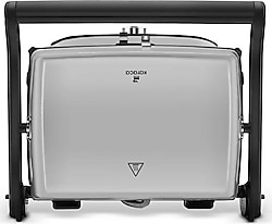 Platz für bis zu 6 Toastscheiben - ideal für die ganze Familie. Der geniale Clou: Er lässt sich um 180° aufklappen und wird zum großen Tischgrill für Partys.