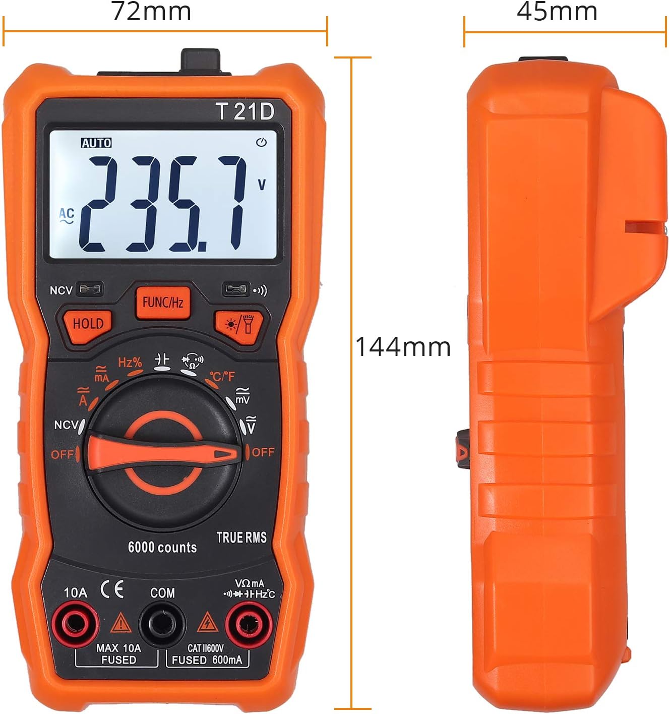 Der Alleskönner für alle Elektro-Projekte! Diese intelligente Stromzange von Proster misst einfach alles: AC/DC Strom bis 600A, Spannung, Widerstand, Kapazität und sogar Temperatur. Der große Farbbildschirm ist super lesbar und der automatische Erkennungsmodus macht's auch für Einsteiger einfach. Besonders praktisch: Die NCV-Funktion warnt dich vor spannungsführenden Leitungen - total sicher! Mit Beleuchtung, Data-Hold und Auto-Off ist es perfekt für die Werkstatt, Hausinstallationen oder Auto-Elektrik. Ob du Kabel prüfst, Motoren checkst oder einfach nur wissen willst, wie viel Strom ein Gerät zieht - hier hast du das richtige Tool!