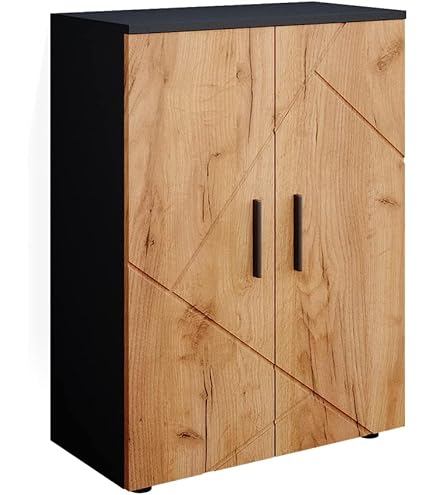 In Anthrazit/Artisan Optik fügt er sich perfekt in jede Einrichtung ein. Mit 2 Türen und 7 verstellbaren Fächern bietet er reichlich Platz für Handtücher, Kosmetik und alle Bad-Utensilien. Aus stabilem 16mm Spanplatte und MDF gefertigt - langlebig und pflegeleicht.