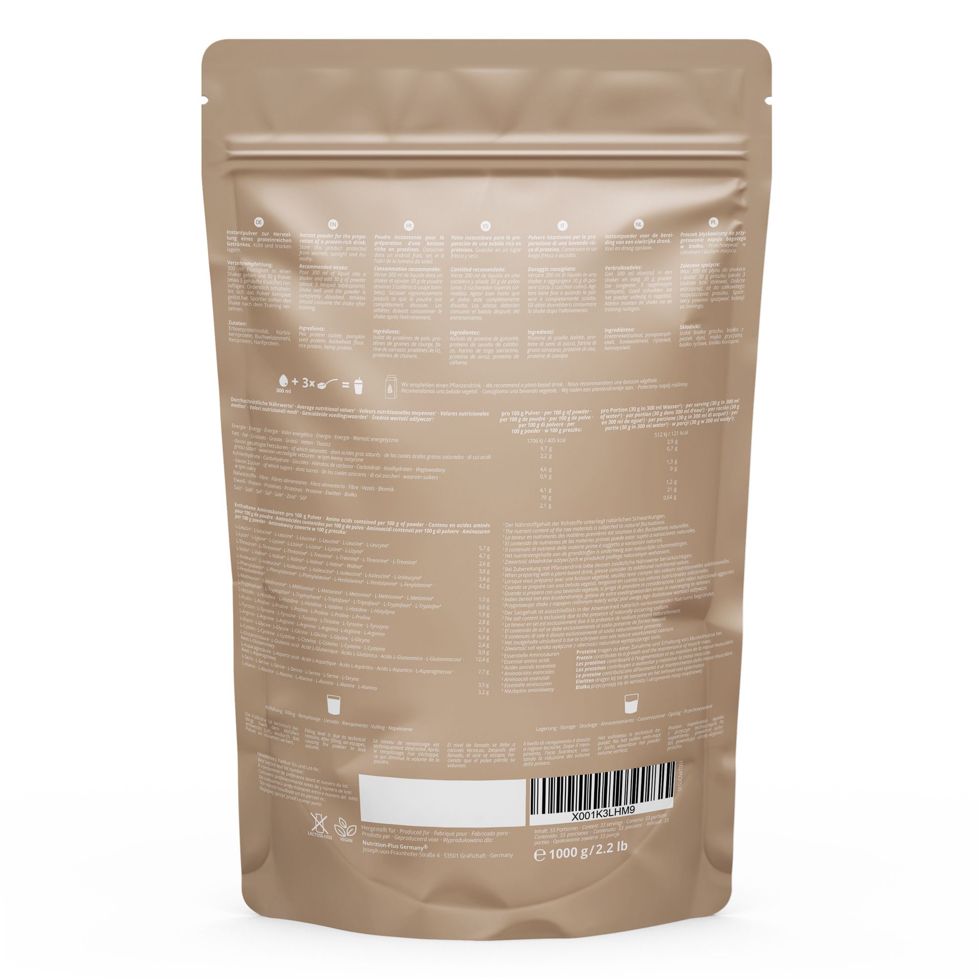 Schmeckt nach richtiger Schokolade und mischt sich super cremig. Perfekt für Shakes nach dem Training oder einfach so zwischendurch. Mit 24g pflanzlichem Protein und 4g BCAAs pro Portion gibt's dir genau das, was deine Muskeln brauchen.