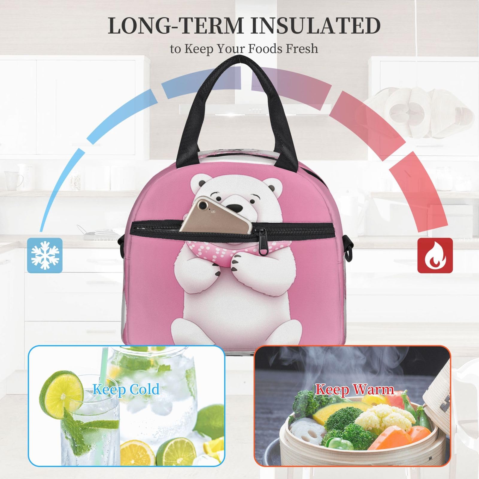 Perfekt für unterwegs! Diese stylische Lunchtasche mit coolem Schachbrettmuster hält dein Essen stundenlang frisch - ob im Büro, in der Schule oder beim Picknick im Park. Sie sieht nicht nur gut aus, sondern ist auch super praktisch!\\n\\n• Maße: 29 x 16 x 21,8 cm\\n• Volumen: ca. 10 Liter\\n• Mit abnehmbarem Schultergurt (68-120 cm)\\n• Auslaufsicheres PEVA-Futter\\n• Fleckenabweisendes Außenmaterial\\n\\nIn die Tasche passt alles rein: deine Lunchbox plus mehrere Snacks, Getränke und sogar das Handy. Die zwei externen Taschen und die Wasserflaschentaschen sind super praktisch für alles, was du so brauchst.\\n\\nDie Isolierung hält dein Essen bis zu 6 Stunden lang frisch - egal ob warm oder kalt. Und wenn mal was daneben geht: Einfach abwischen und schon ist sie wieder sauber!\\n\\nMit dem verstellbaren Gurt trägst du sie bequem über der Schulter oder in der Hand. Ein echter Allrounder für jeden Tag!