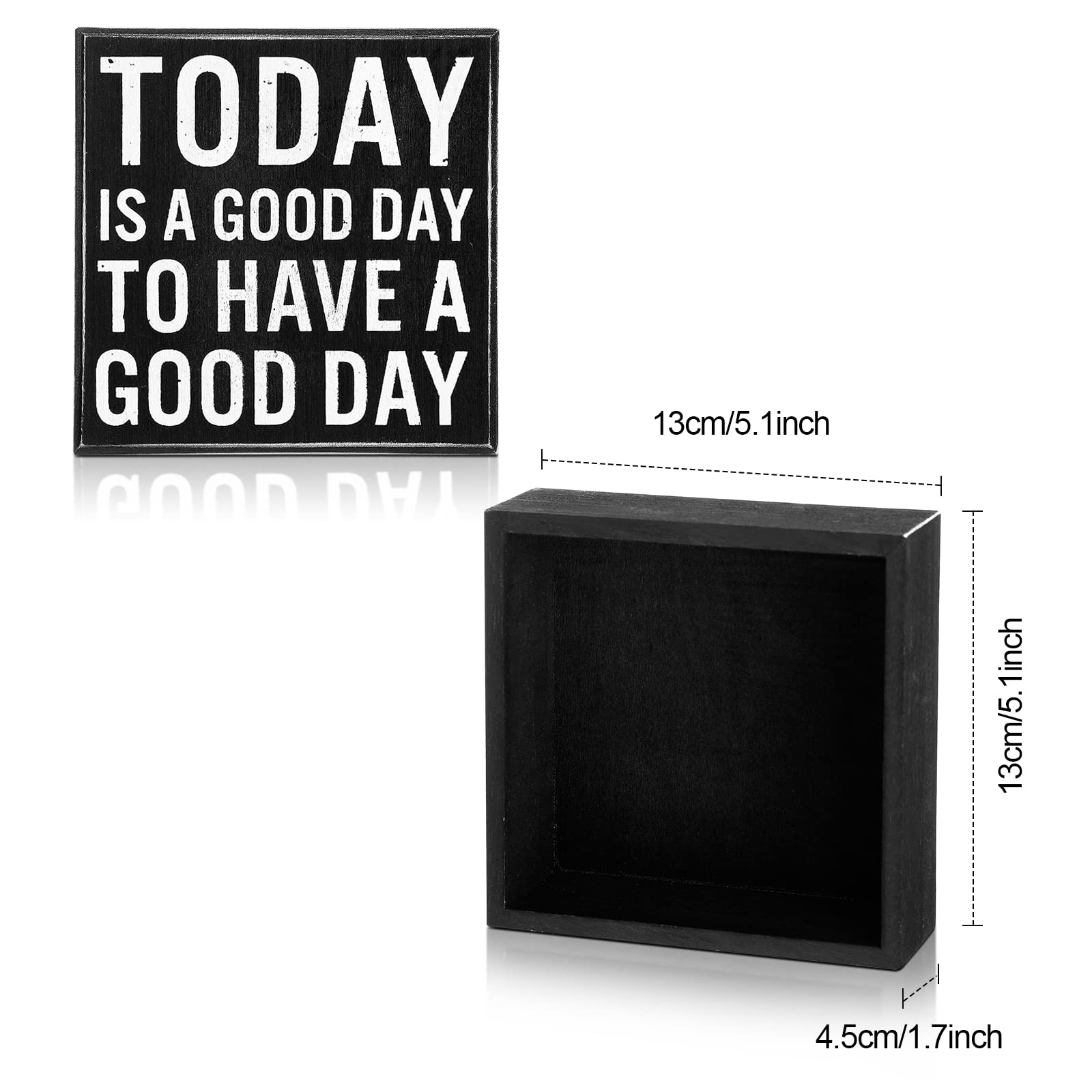 Das quadratische Schild misst 10,2 x 10,2 cm und kommt mit einem stabilen Holzständer. Der bunte Spruch auf transparentem Acryl sieht nicht nur super stylisch aus, sondern sorgt auch für sofortige gute Laune.