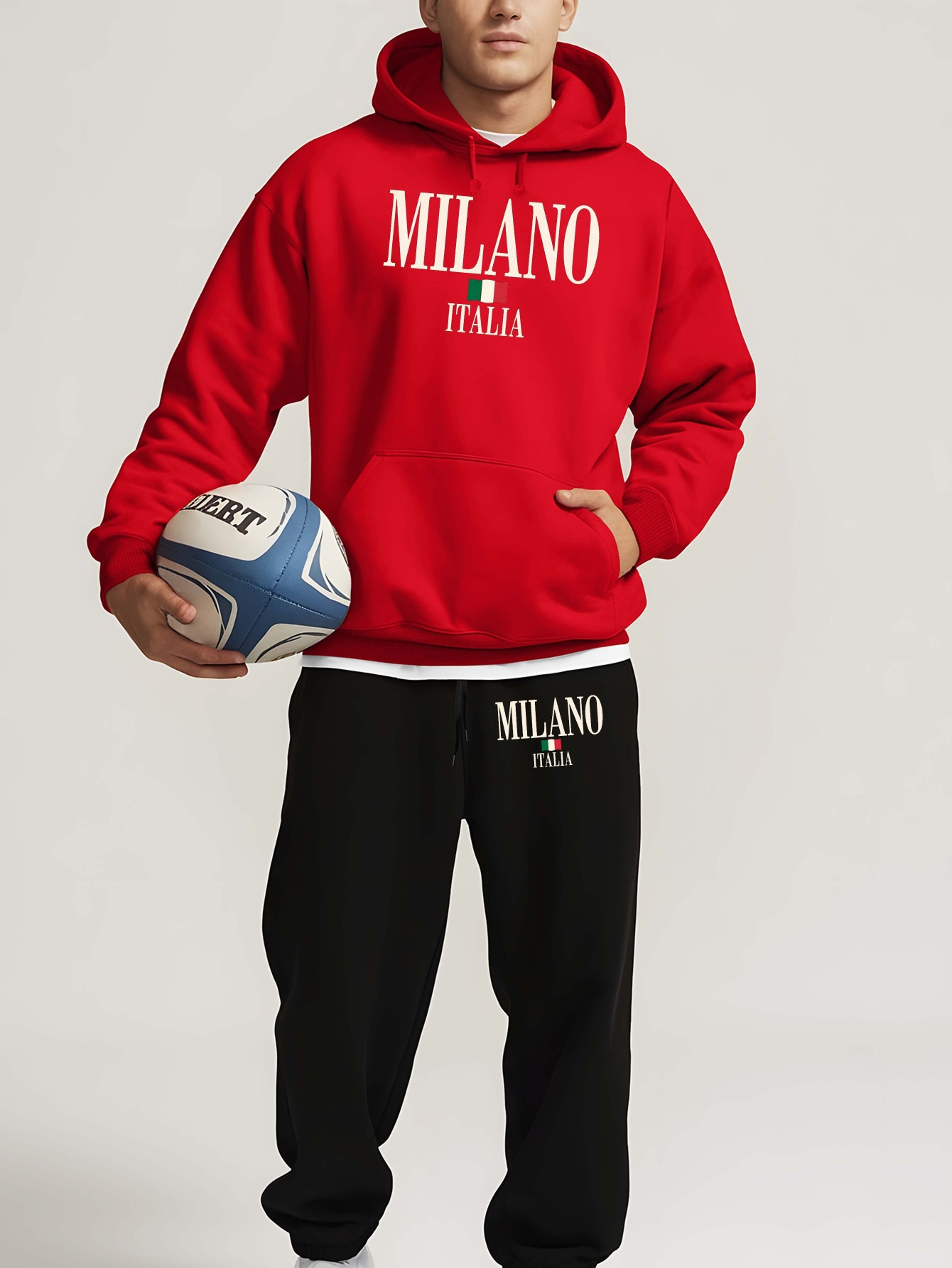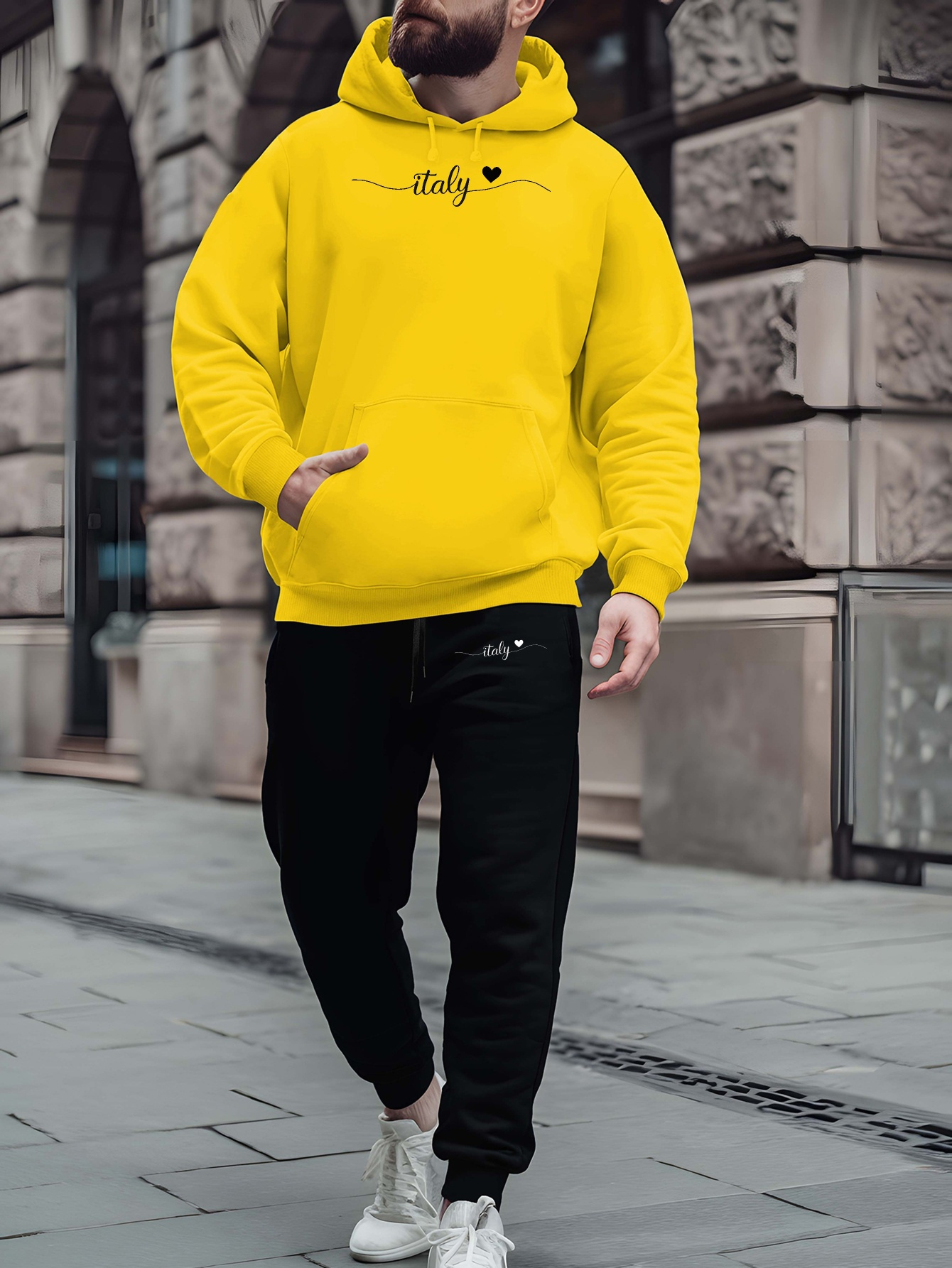 Mega bequemer Jogginganzug für Herren! Das 2-teilige Set besteht aus weicher Baumwolle - super angenehm auf der Haut und atmungsaktiv. Perfekt fürs Training, aber auch einfach nur zum Chillen auf der Couch. Mit stylischem Italien-Print, der richtig was her macht. Wiegt ca. 750g. Baumwolle ist einfach klasse: sorgt dafür, dass du nicht schwitzt, ist flexibel und bequem. Ob Workout, Relaxen oder als Hausanzug - hier fühlst du dich wohl! In verschiedenen Farben erhältlich (siehe Bilder). Achtung: Wegen unterschiedlicher Monitore kann die Farbe leicht abweichen. Maße manuell gemessen, daher +/- 1-3mm möglich. Einfach mal richtig entspannen in diesem Anzug!