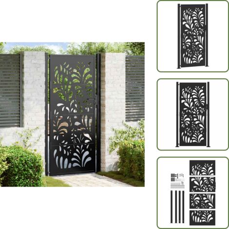 • JUDYY Gartentor Anthrazit 105x205 Cm - Stahl Bambus-Design Mit Schloss