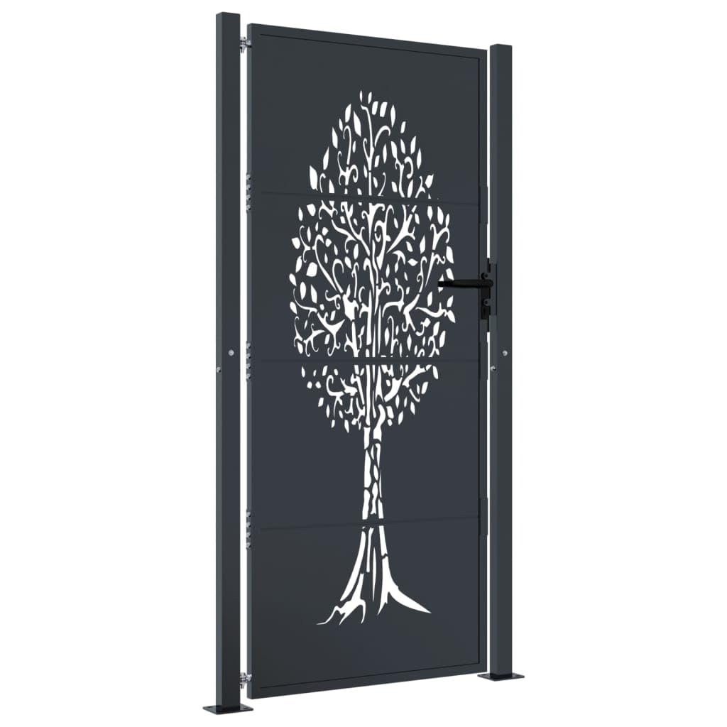JUDYY Gartentor Anthrazit 105x205 Cm - Stahl Bambus-Design Mit Schloss